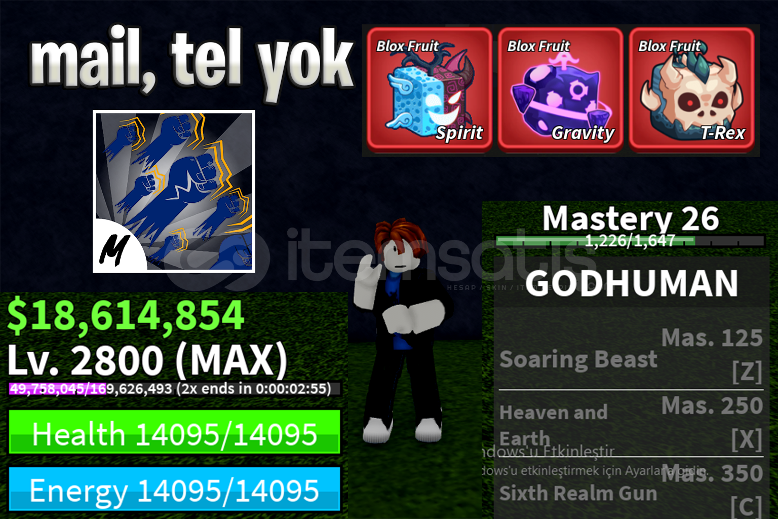 BF 2800 LVL + 3 KIRMIZI MEYVE + GOD HUMAN HESAP
