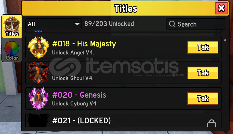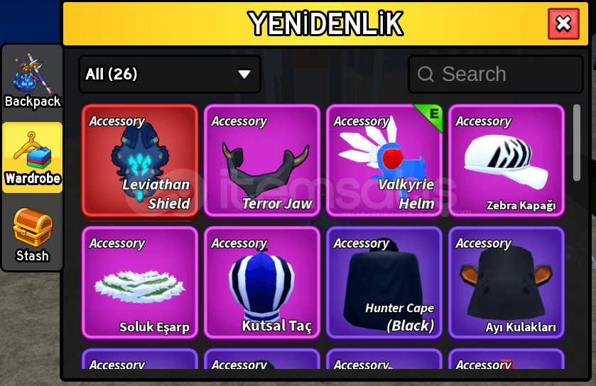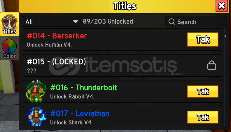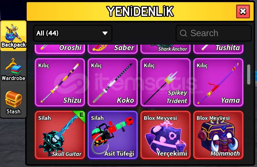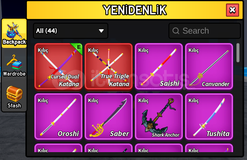 TÜM KILIÇLAR 600LVL'DİR. DİĞER TÜM İTEMLERİN TÜM SKİLLERİ AÇIKTIR.