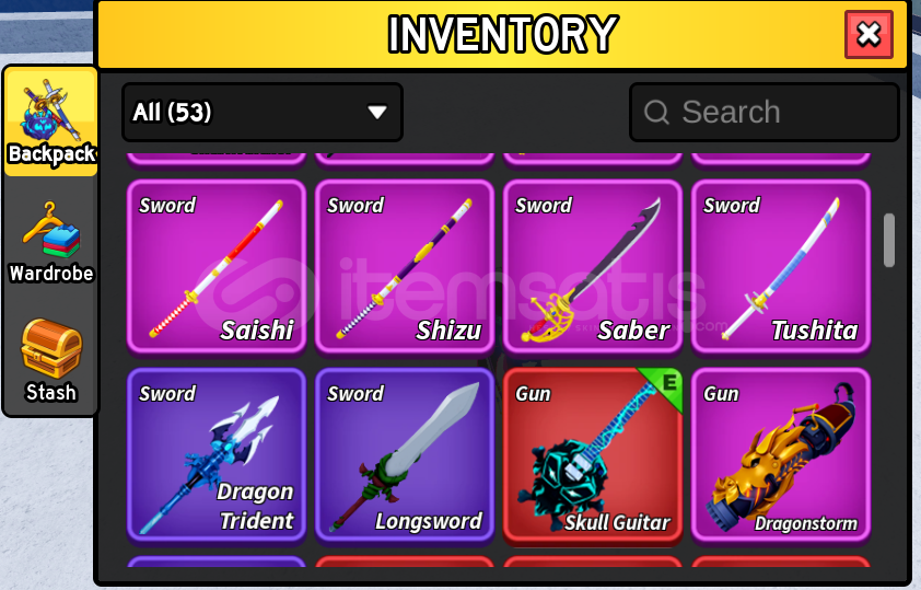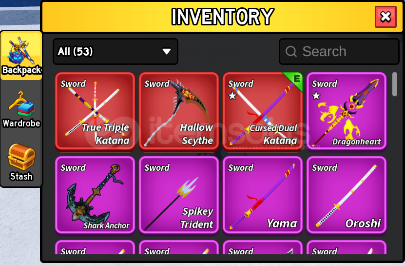 CDK - HALLOW SCYTHE - SHARK ANCHOR - TRUE TRIPLE KATANA - DRAGON HEART - SPIKEY TRIDENT - SABER 600LVL'DİR. DİĞER TÜM İTEMLERİN TÜM SKİLLERİ AÇIKTIR.