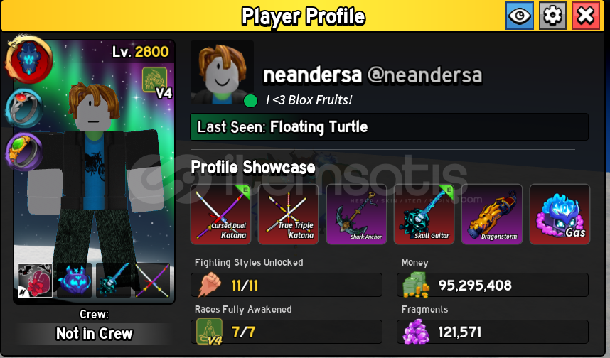 HESAP 2800 MAX SEVİYEDEDİR.HESAPTA FULL GEAR 7X RACE BULUNMAKTADIR. TÜM RACE'LER FULL GEARDIR.DRACO V4CYBORG V4GHOUL V4SHARK V4RABBİT V4ANGEL V4HUMAN V4KİTSUNE 600LVL'DİR.SANGUİNE ART VE GODHUMAN 600LVL'DİR.HESAPTA OBSERVATİON V2 (KEN V2) BULUNMAKTADIR.HESAPTA 95M CASH VE 121K FRAG BULUNMAKTADIR.HESAPTAKİ TÜM KILIÇLAR 600LVL'DİR. DİĞER TÜM İTEMLERİN TÜM SKİLLER...