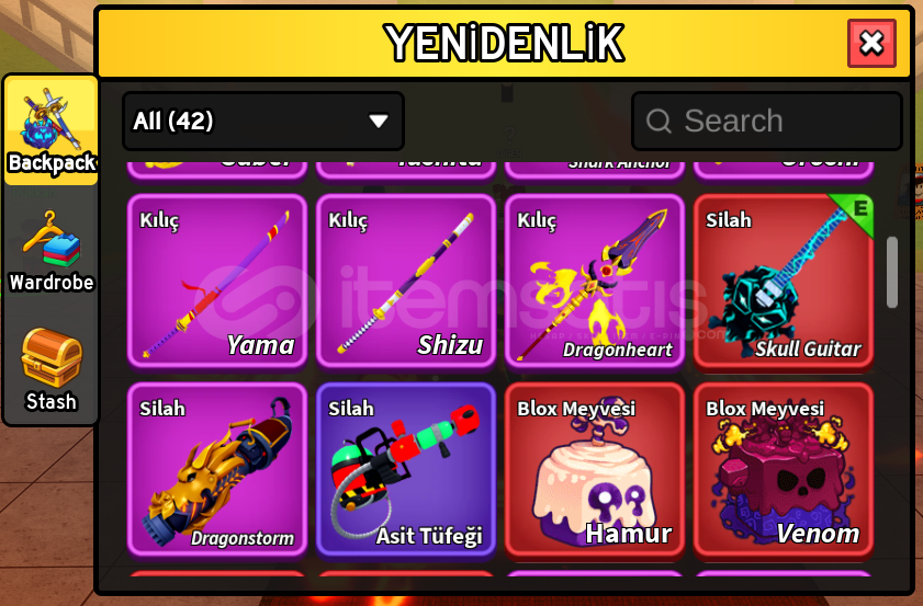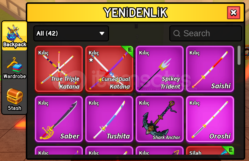 HESAPTAKİ TÜM KILIÇLAR 600LVL'DİR. DİĞER TÜM İTEMLERİN TÜM SKİLLERİ AÇIKTIR.