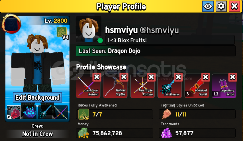 HESAP 2800 MAX SEVİYEDEDİR.HESAPTA FULL GEAR 7X RACE BULUNMAKTADIR. TÜM RACE'LER FULL GEARDIR.DRACO V4CYBORG V4GHOUL V4SHARK V4RABBİT V4ANGEL V4 HUMAN V4ENVANTERDE 3X Mytical Scroll - 12X Legendary Scroll BULUNMAKTADIR.KİTSUNE 600LVL'DİR.SANGUİNE ART VE GODHUMAN 600LVL'DİR.HESAPTA OBSERVATİON V2 (KEN V2) BULUNMAKTADIR.HESAPTA 75M CASH VE 57K FRAG BULUNMAKTADIR.HESAPTAKİ TÜM KILIÇLAR 600LVL'DİR. DİĞER TÜM İTEML...