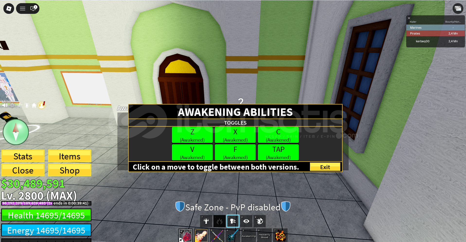 HESAP 2800 MAX LVL'DİRSANGUİNE ART 600LVL'DİR. Diğer Tüm Dövüş Stillerinin Tüm Skilleri Açıktır.FULL GEAR ANGEL V4 BULUNMAKTADIR.DOUGH V2 350LVL'DİR. TÜM SKİLLERİ AÇIKTIRCDK 600LVL'DİR. SOUL GUİTAR VE DİĞER TÜM İTEMLERİN TÜM SKİLLERİ AÇIKTIR.30M CASH BULUNMAKTADIR.HESAPTA E POSTA YOKTUR.