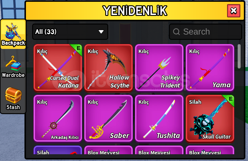 CDK ve HALLOW SCYTHE 600LVL'dir. Skull Guitar ve DİĞER TÜM İTEMLERİN SKİLLERİ AÇIKTIR.