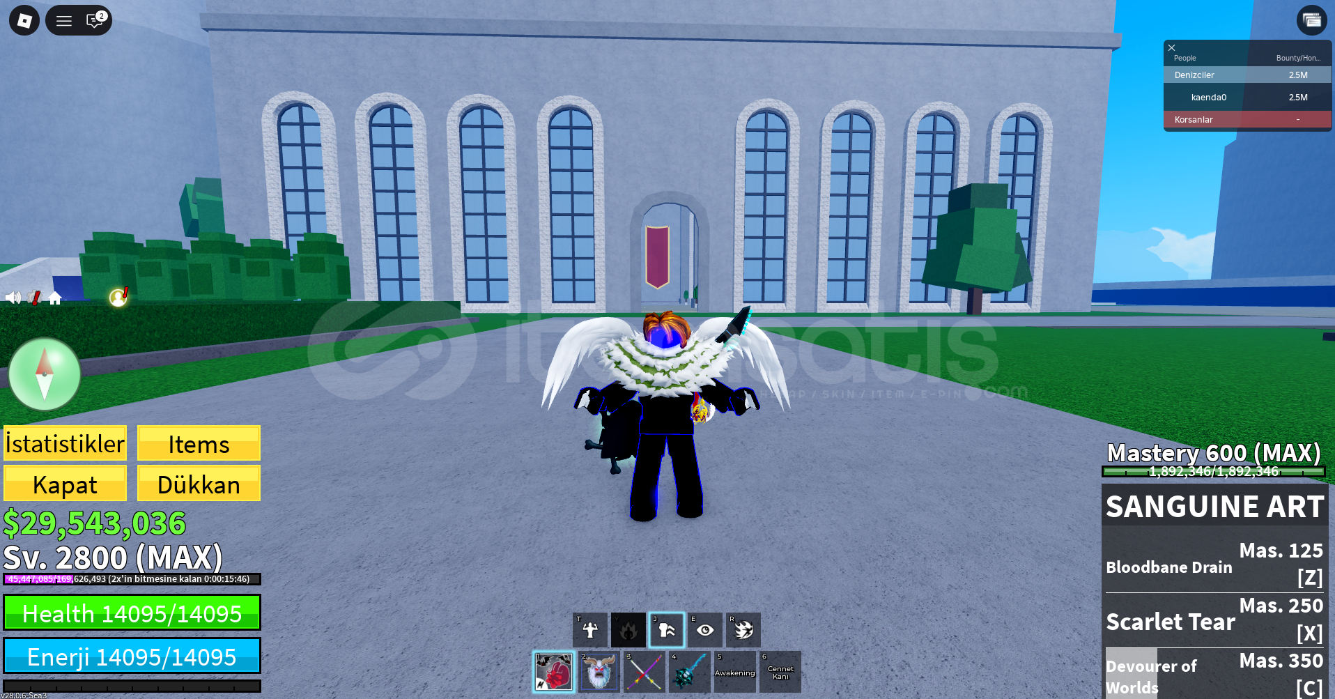 HESAP 2800LVL MAX SEVİYEDİR.SANGUİNE ART 600LVL'DİR. DİĞER TÜM DÖVÜŞ STİLLERİNİN TÜM SKİLLERİ AÇIKTIR.FULL GEAR Angel V4 BULUNMAKTADIR.CDK ve HALLOW SCYTHE 600LVL'dir. Skull Guitar ve DİĞER TÜM İTEMLERİN SKİLLERİ AÇIKTIR.YETİ 400LVL'DİR TÜM SKİLLERİ AÇIKTIR.HESAPTA 29M CASH BULUNMAKTADIR.HESAPTA DE&#...