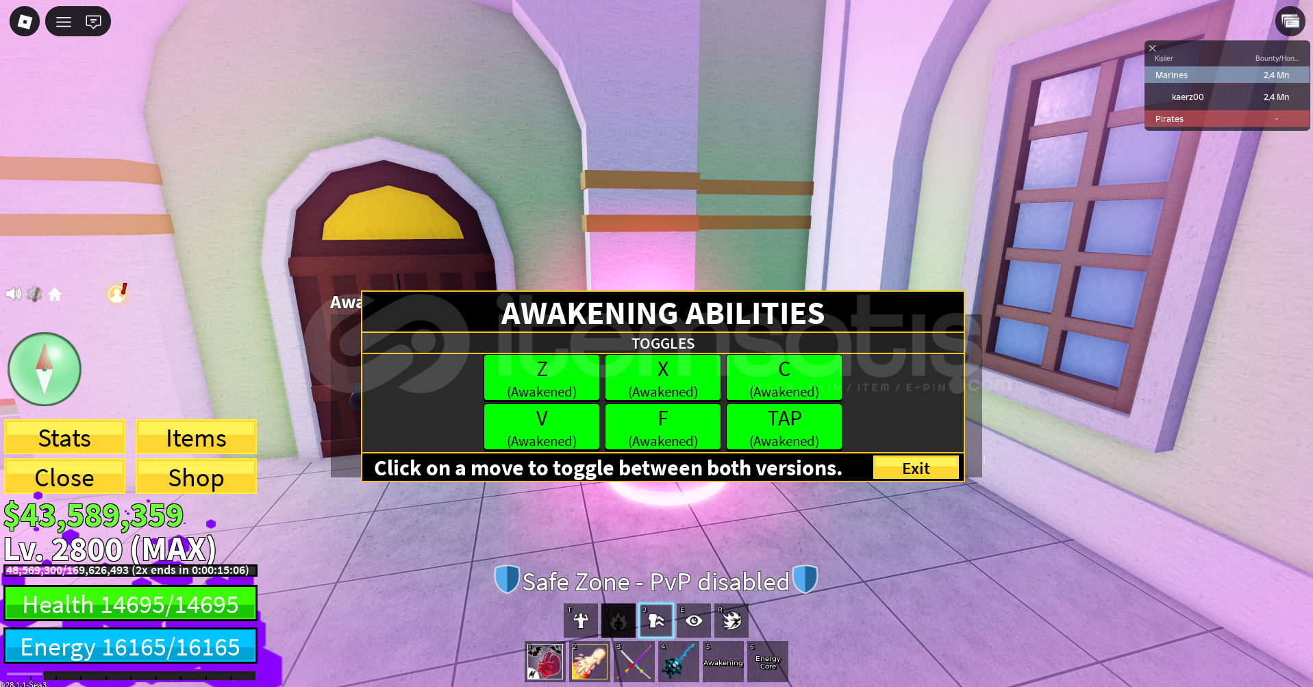 HESAP 2800 MAX LVL'DİRSANGUİNE ART 600LVL'DİR. Diğer Tüm Dövüş Stillerinin Tüm Skilleri Açıktır.FULL GEAR CYBORG V4  BULUNMAKTADIR.DOUGH V2 400LVL'DİR. TÜM SKİLLERİ AÇIKTIRCDK 600LVL'DİR. SOUL GUİTAR VE DİĞER TÜM İTEMLERİN TÜM SKİLLERİ AÇIKTIR.43M CASH BULUNMAKTADIR.HESAPTA E POSTA BULUNMAMAKTADIR, HESABIN İLK SAHİ...