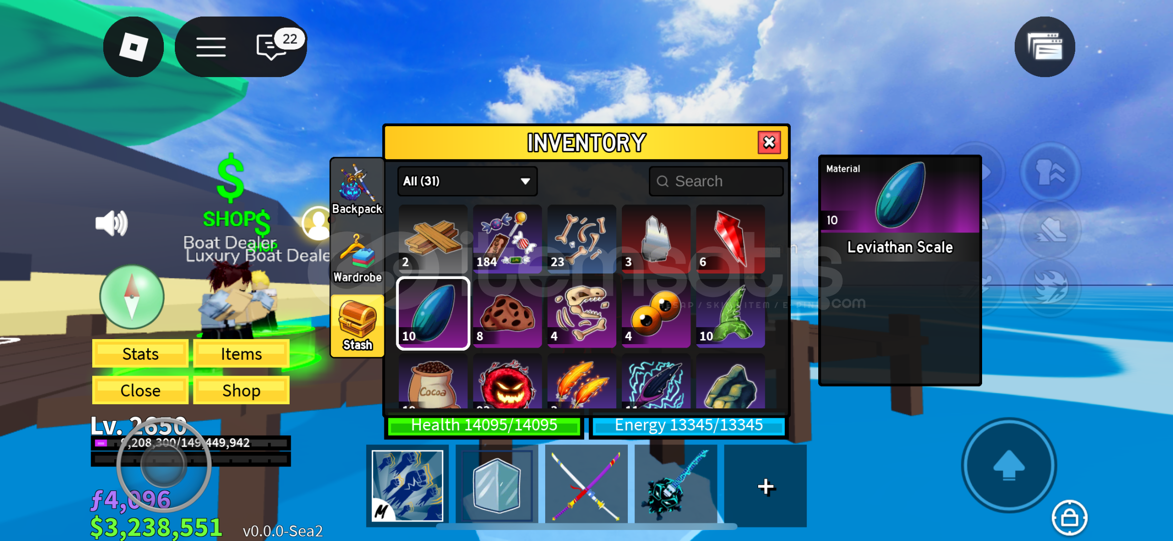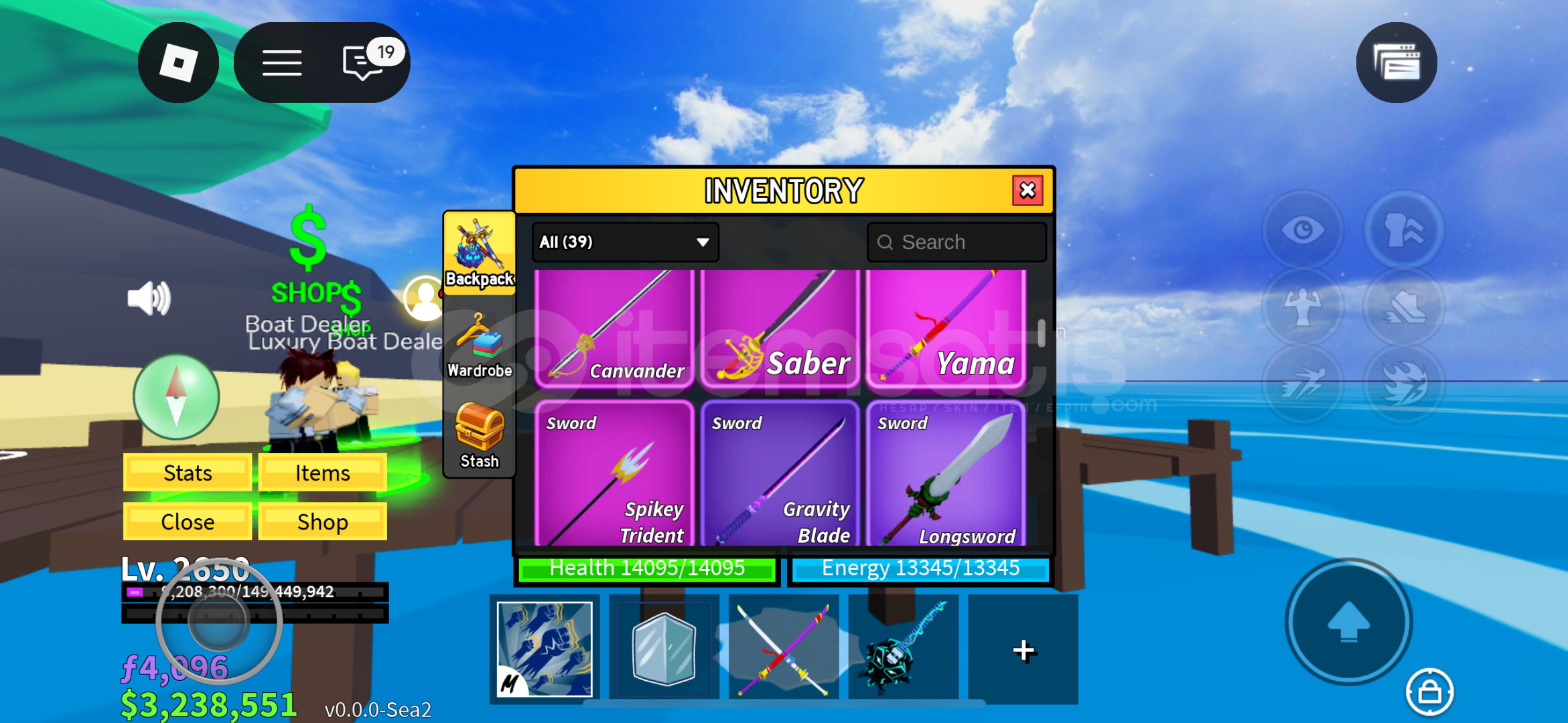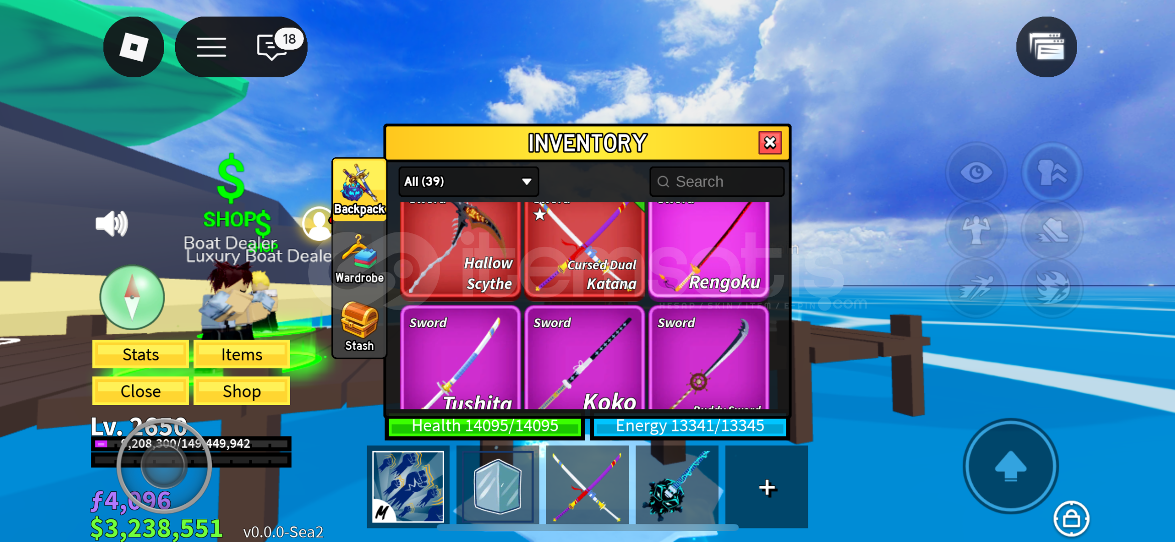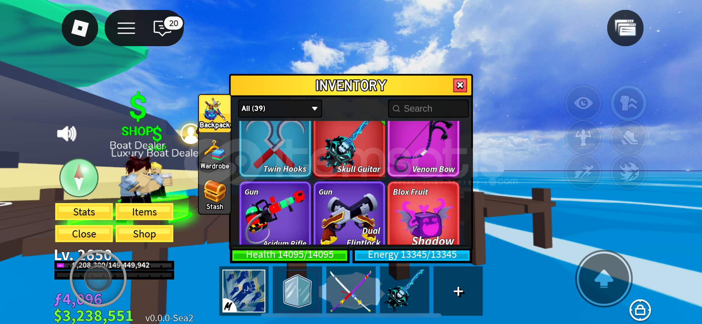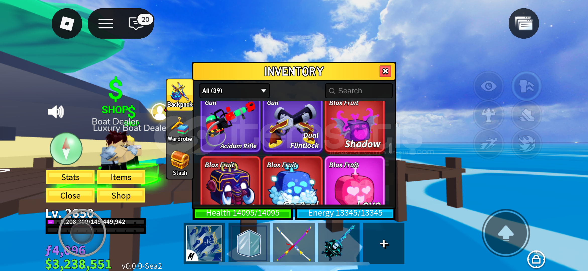 Hoş geldiniz Hesabımızda 3.5m bounty mevcutturHesabımızdaki raceler - Cyborg V4/Human V4Hesabımızdaki bazı swordlar - CDK/HS/Rengoku/Spikey Trident ve dahası…Hesabımızdaki bazı gunlar - Skull guitar/Acidium rifle ve dahası Hesabımızdaki bazı fruitler - Mammoth/Control/Shadow/Pain
