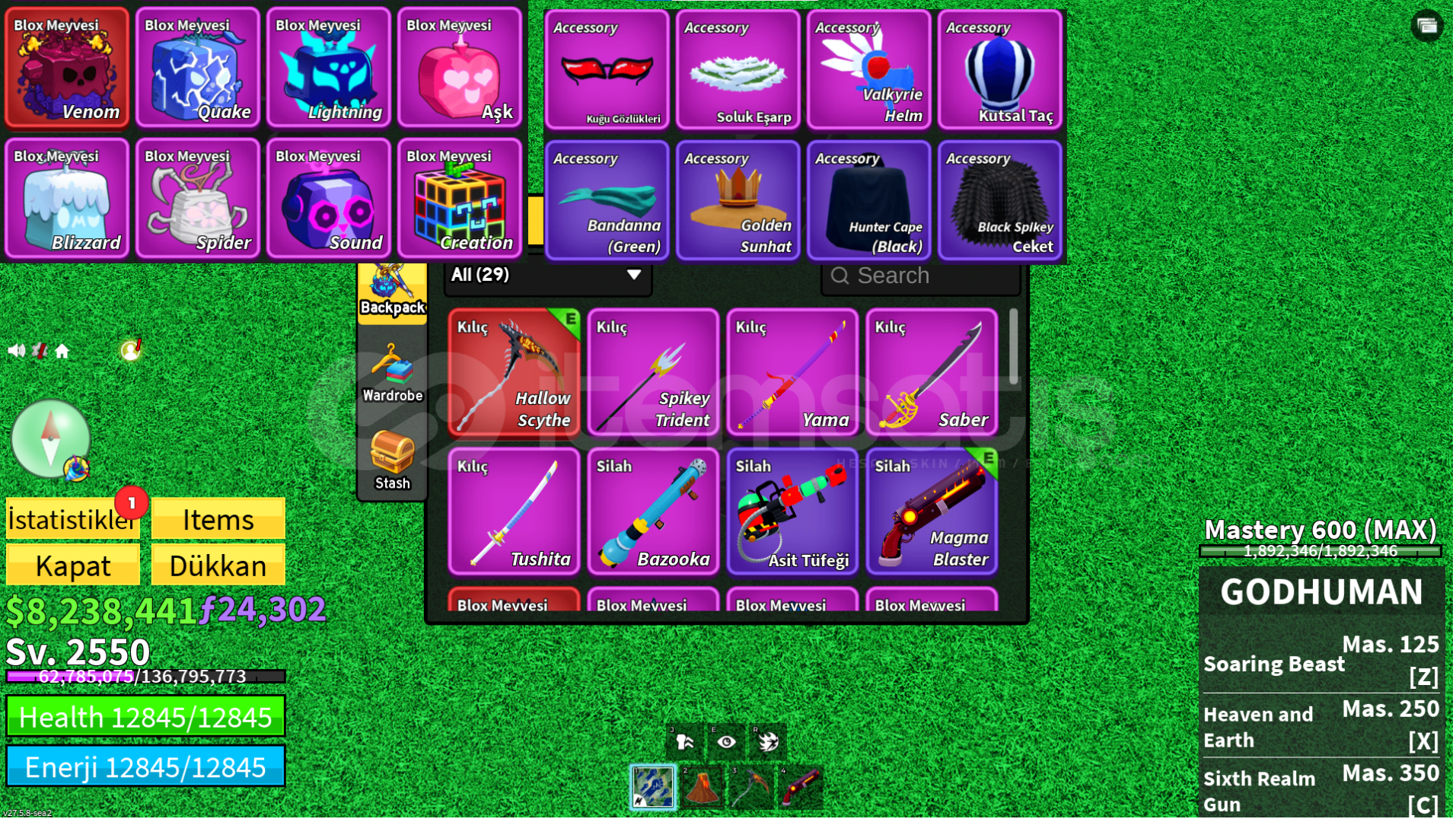 hallow scythevenom ve lightning meyvesigodhuman max8m beli24k fragmentgörseldeki herşey hesapta vardırhesaplarda herhangi bir kişisel bilgi girili değildir (e-posta,telefon)hesap bildirimlere isim şifre olarak gelir