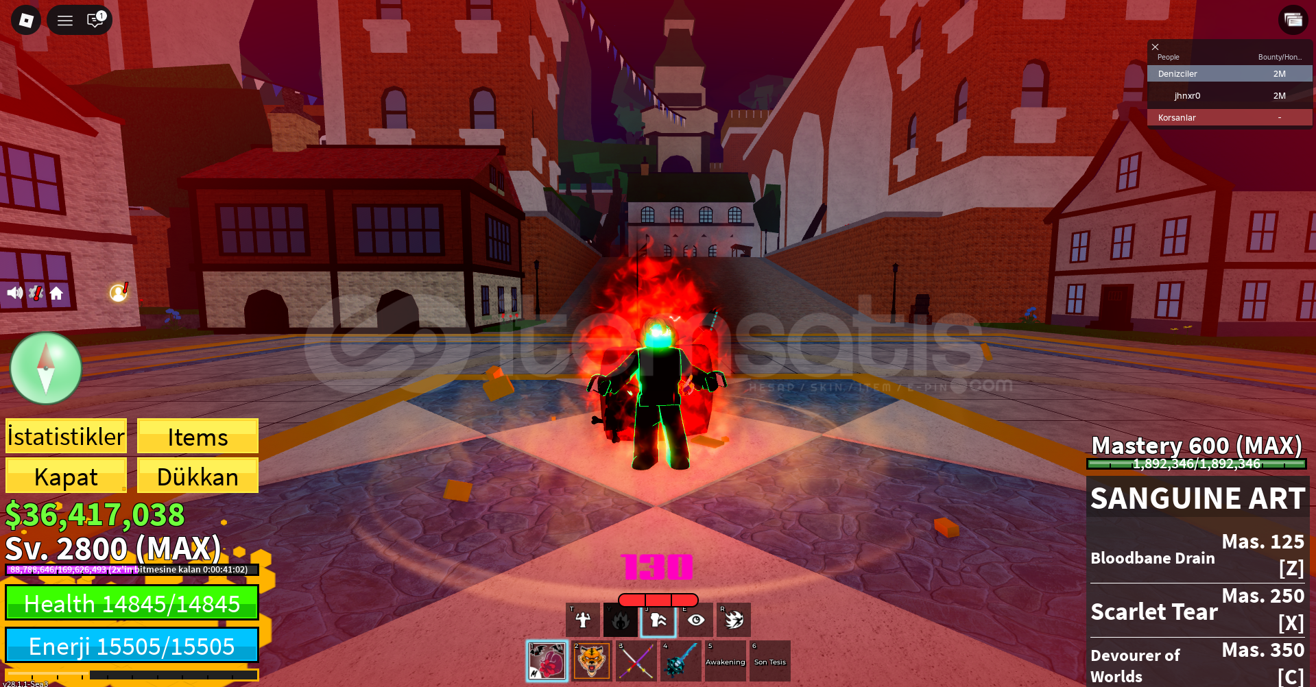 HESAP 2800 MAX LVL'DİRSANGUİNE ART 600LVL'dir. Diğer tüm dövüş skilleri açıktır.FULL GEAR HUMAN V4 BULUNMAKTADIR.Tiger 350LVL'DİR, TÜM SKİLLERİ AÇIKTIRCDK 600LVL'DİR. SOUL GUİTAR VE DİĞER TÜM İTEMLERİN TÜM SKİLLERİ AÇIKTIR.36M CASH BULUNMAKTADIR.HESAPTA DEĞİŞEBİLEN E POSTA BULUNMAKTADIR, KODSUZ DİREKT DEĞİ...