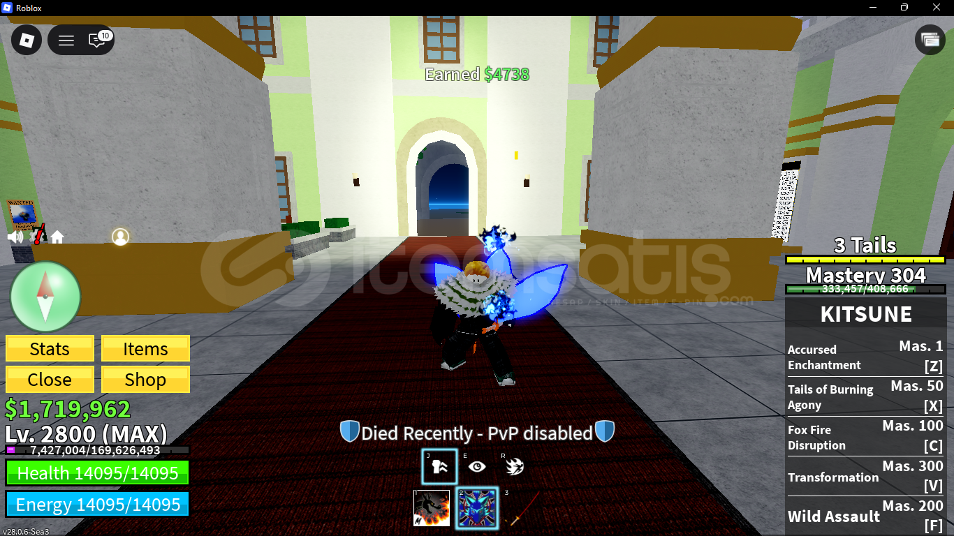 Hesap max lvl'dir.Kitsune 300+ mastery olup, tüm skilleri açıktır.Tyrant of the skies kesilmiştir. Tikideki portal açıktır, submarine island'a gidilebilir.Hesapta Godhuman skilleri açıktır.!!!satın almadan önce benimle iletişime geçin!!!