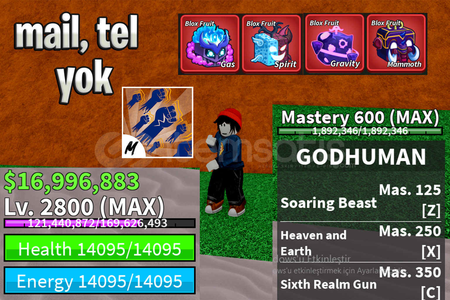 BF MAX LVL + 4 KIRMIZI MEYVE + GOD HUMAN HESAP