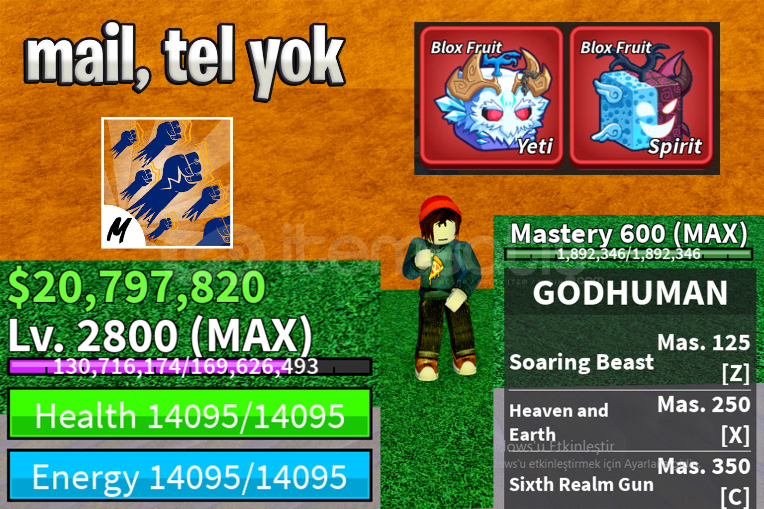 BF MAX LVL + YETI FRUIT + GOD HUMAN HESAP