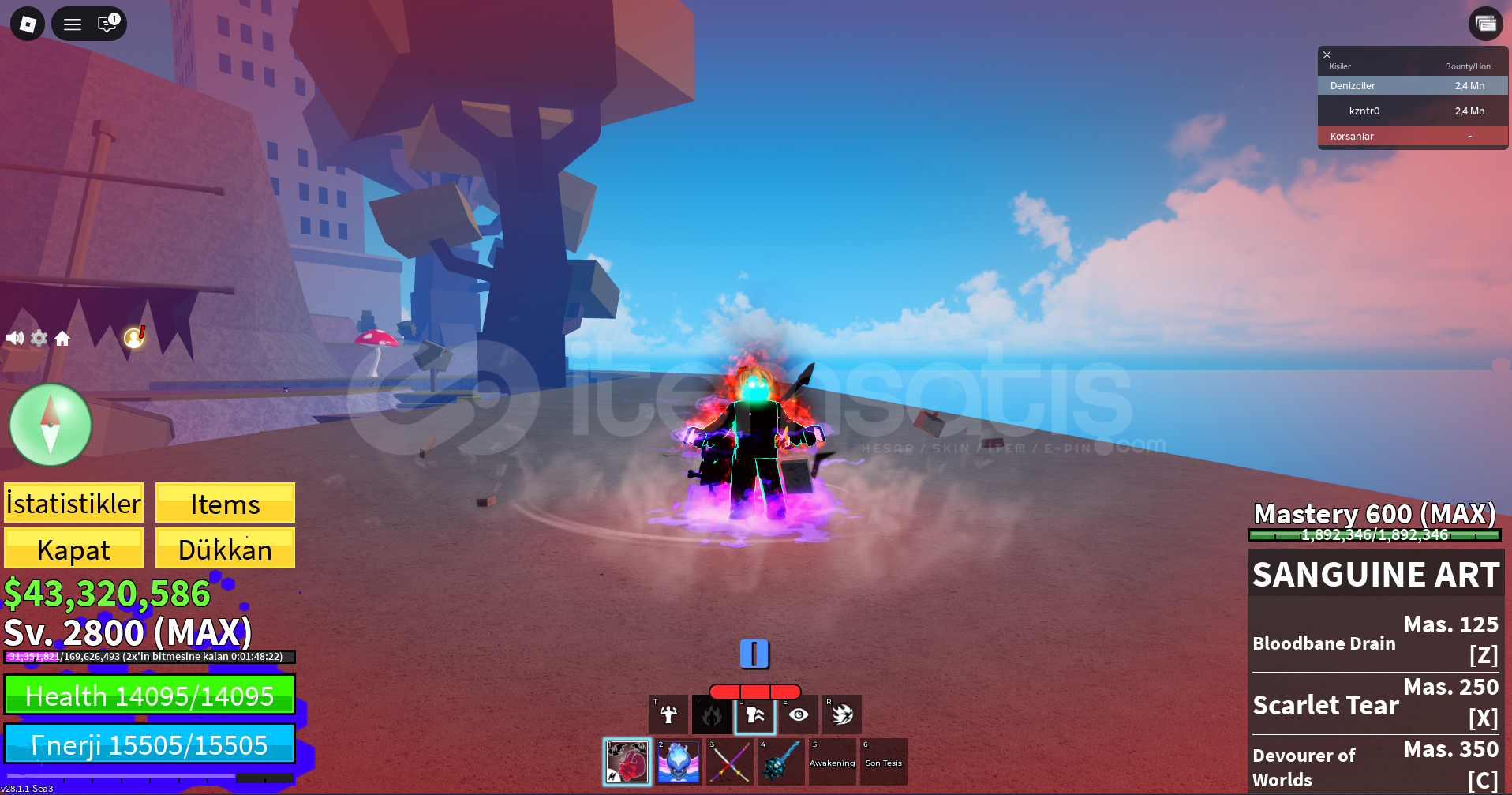 İLANLAR OTMATİK TESLİMDİR. AKTİF DEĞİLSEM BİLE ALABİLİRSİNİZ, HESAP BİLGİLERİ OTMATİK TESLİM EDİLİR.HESAP 2800 MAX LVL'DİRSANGUİNE ART 600LVL'DİR.HESAPTA FULL GEAR HUMAN V4 BULUNMAKTADIR.GAS 400LVL'dir. TÜM SKİLLERİ AÇIKTIRCDK 600LVL'dir. SOUL GUİTARIN ve diğer itemlerin TÜM SKİLLERİ AÇIKTIR.43M CASH BULUNMAKTADIR.ʌ...