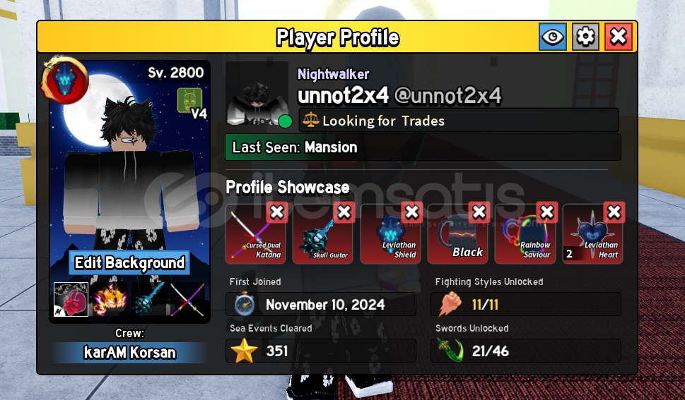 🔥 ROBLOX BLOX FRUIT HESAP SATIŞ – 2800 LEVEL – PERM BUDDHA – GHOUL V4 – FULL PAKET 🔥 Hesap Özellikle...