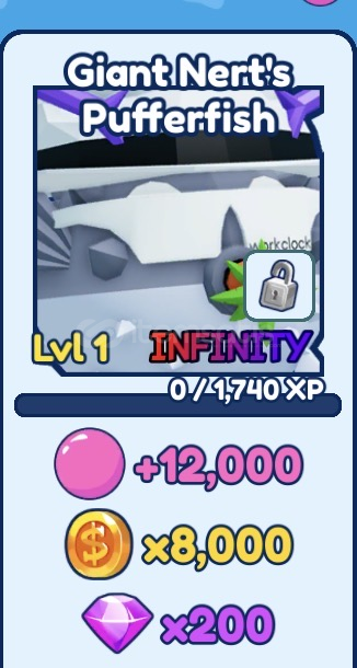 Bubble gum simulator infinity oyununda infinity pet olan giant nertpufferfish verilir tradeyi acmis olmaniz gerekmektedir