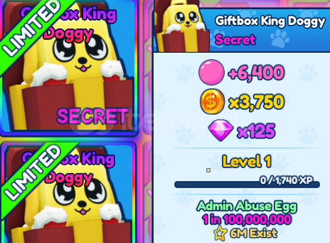 • 💎 10 Adet Giftbox King Doggy verilir.