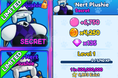 🥚Peti teslim alabilmeniz için oyun içi 2000 yumurta açmış olmanız gerekmekte.💎 Nert Plushie verilir.✔️ Kimlik onaylı satıcı rozeti (Güvenilir hesap) vardır. sıkıntısız alabilirsiniz.✔️ Online olmasam bile alabilirsiniz, aktif olduğumda veriyorum.