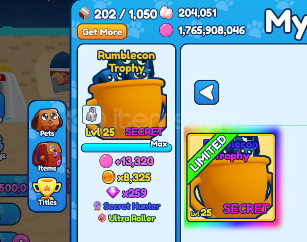 Bubblegum Simulator İnfinity Shiny Rumblecon Trophy