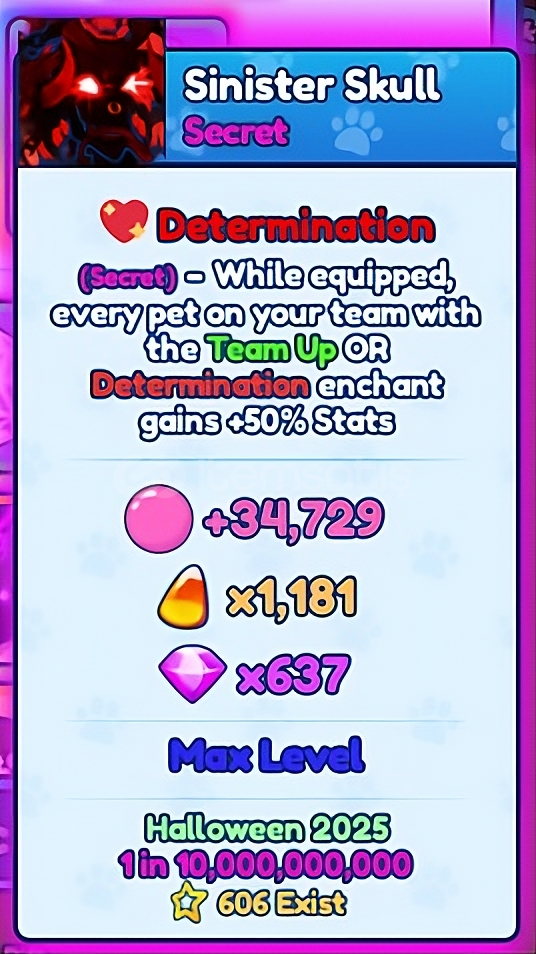 BGSI Sinister Skull Secret Pet10.000.000.000 DA 1 İHTİMALLE ÇIKAN SECRET PET