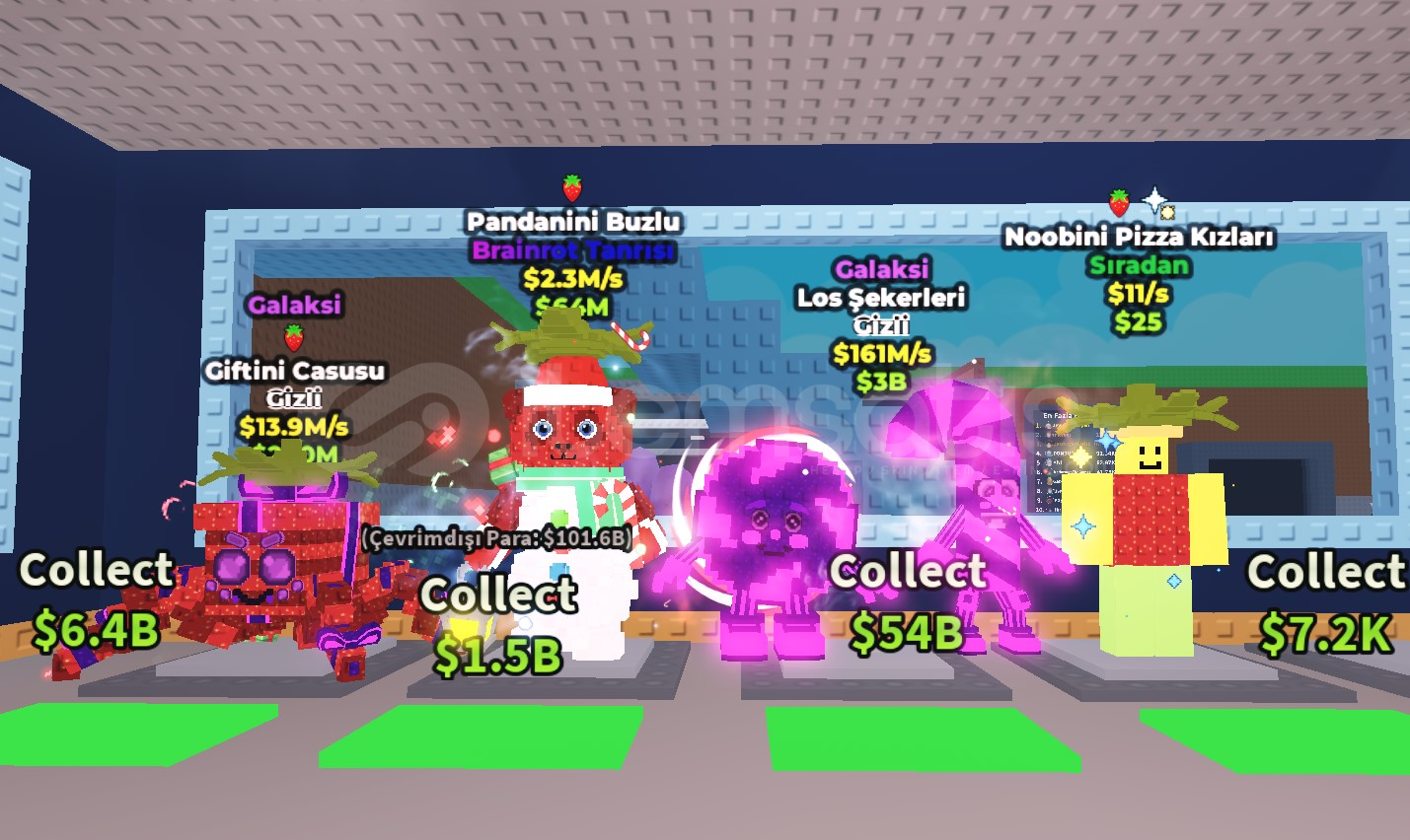 Bir Brainrot Calda Los candys (EN UCUZU)  1x Los candys galaxy 161m/s Yanındakiler bedava Pet VIP Serverda Verilecektir İNDİRİM YAPILIR.