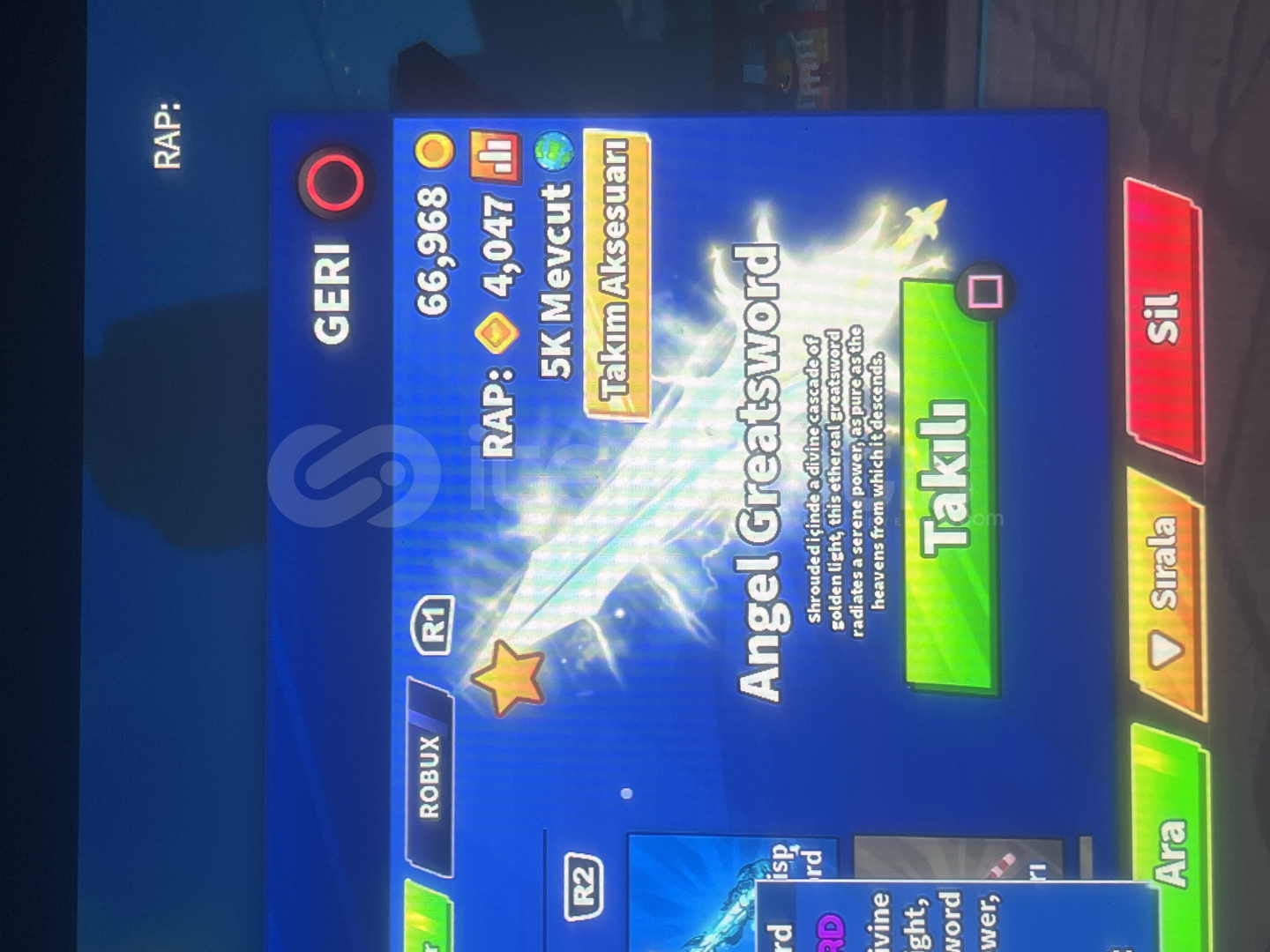 Angel Greatsword (Melek Büyük Kılıcı) satılık item ⚠️Kılıç çok parladıgı icin fazla belli olmamaktadır.