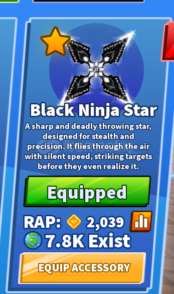 Blade Ball BLACK NINJA STAR. Ürün %100 güvenilirdir ve sorularınız varsa dm yolu ile bana iletebilirsiniz.