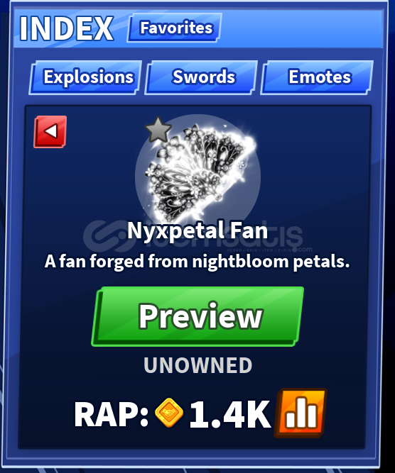 Blade ball Nyxpetal fan. Ürün trade yolu ile gönderilecektir. Eğer burda satılmasını istediğiniz başka bir eşya varsa yazabilirsiniz. Ürünlerimiz herhangi bir ban riski taşımaz.