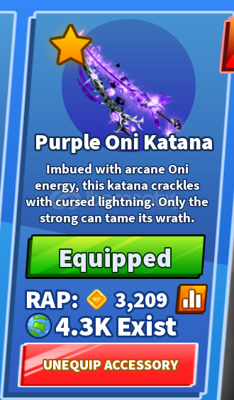 Blade Ball PURPLE ONI KATANA. Ürün %100 güvenilirdir ve sorularınız varsa dm yolu ile bana iletebilirsiniz.