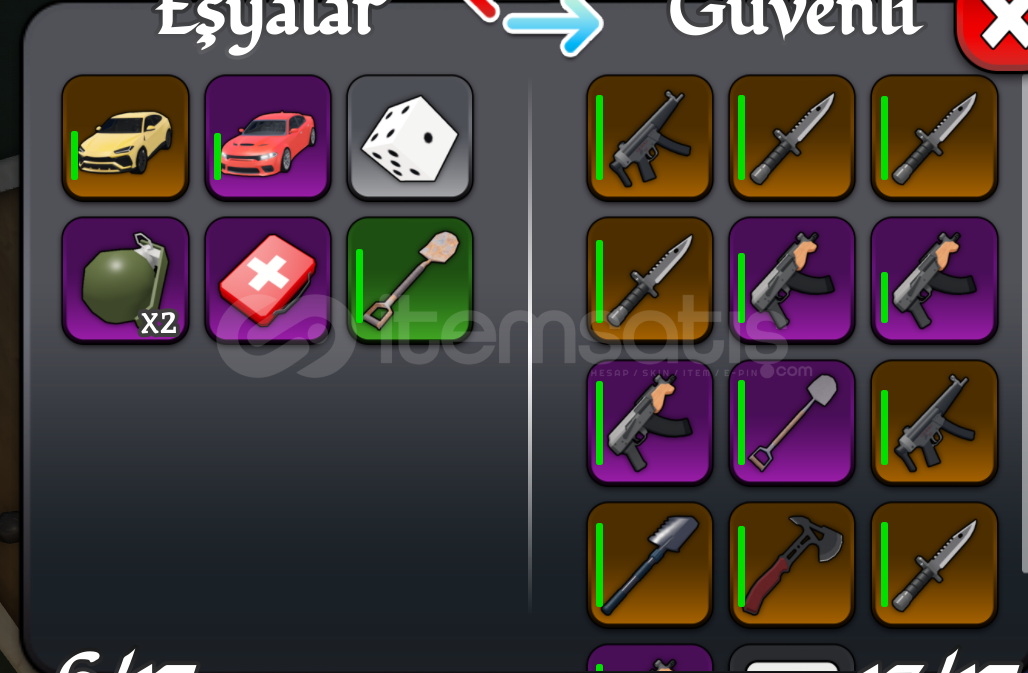 deposu full içinde urus + srt mevcut ve efsanevi eşyaları mevcut