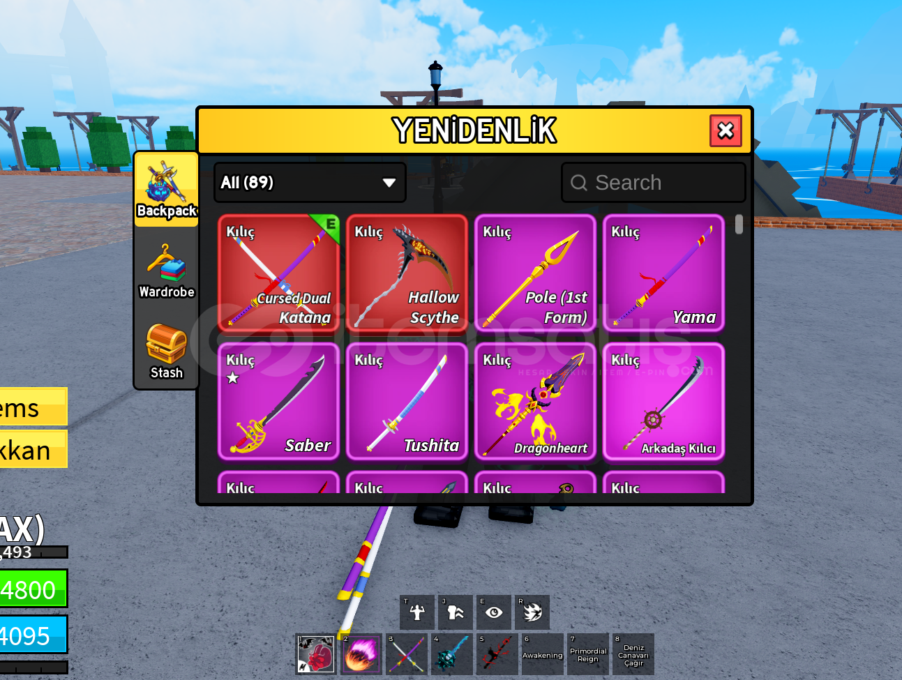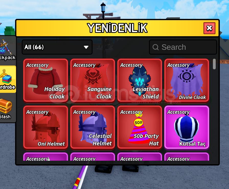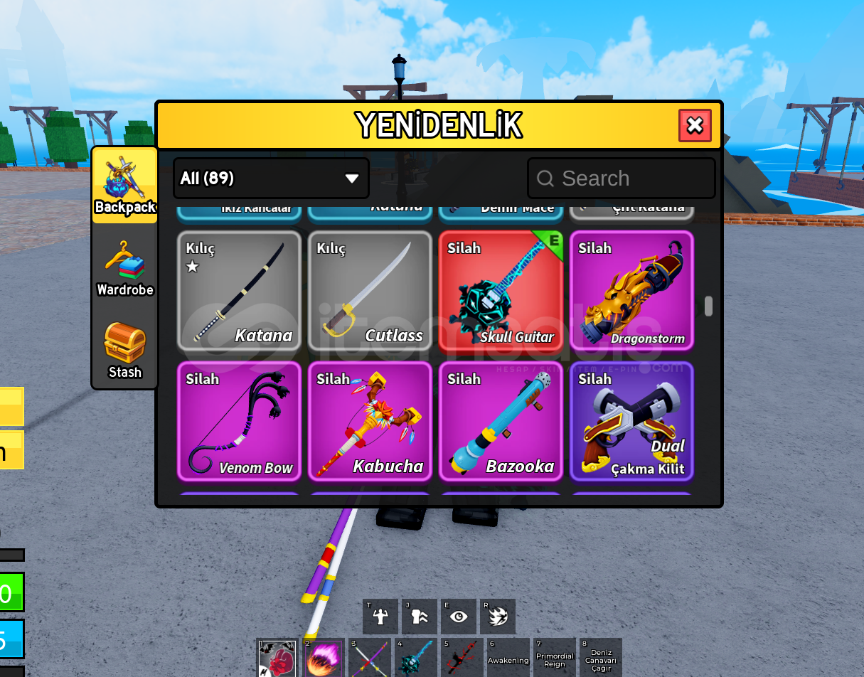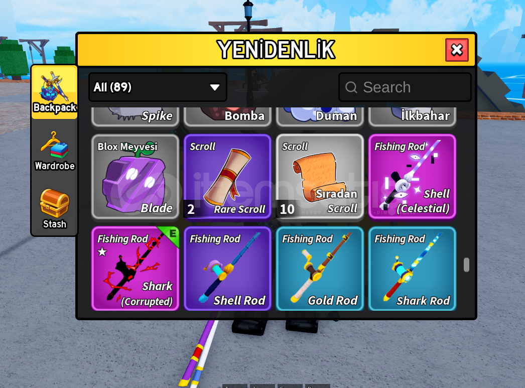 Max lvl olup Hesabın içinde perm dragon perm lightning bulunmaktadır.Ghoul rabbit ve draco full gear v4 dür bütün dövüs stilleri hesabın içinde vardır.Sınırlı sürede gelen eventteki oltalar ve bütün aksesuarları vardır. Cdk,soul guitar,hallow scythe,dragonstorm,dragonheart,spikey trident,shark anchor,magma blaster vb oyundaki en nadir esyalara sahip olup piratede 11m bountysi vardır. İ&cc...