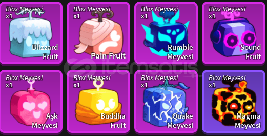 Almadan önce yazınız aktif değilsem aktif olduğumda teslimat yaparım.Stok: SINIRSIZTeslimat Sea2 de yapılır.Aldıktan sonra kullanıcı adınızı iletiniz.Paketli Alımlarda 5TL indirim vardır.İstediğiniz meyveyi mesaj yolu ile iletiniz ona göre özel ilan açalım.LİGHTNİNG 40 TL OLARAK SAYILIRbuddha venom shadow sprit portal gohst spider sound quake pain light ma...