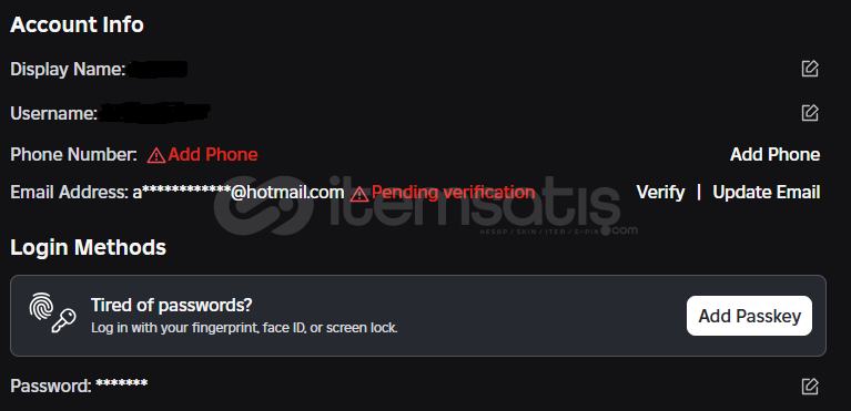 • Ek olarak hesaplar mailsizdir ve hiçbir şekilde hesapların maili bende mevcut değildir. Hesaplarda oluşacak herhangi bir sorunda sorumluluğu üstlenmemekteyim. Oyüzden hesabı alırken ek koruma ve 2Pass Key gibi korumalar eklemeyi unutmayın.