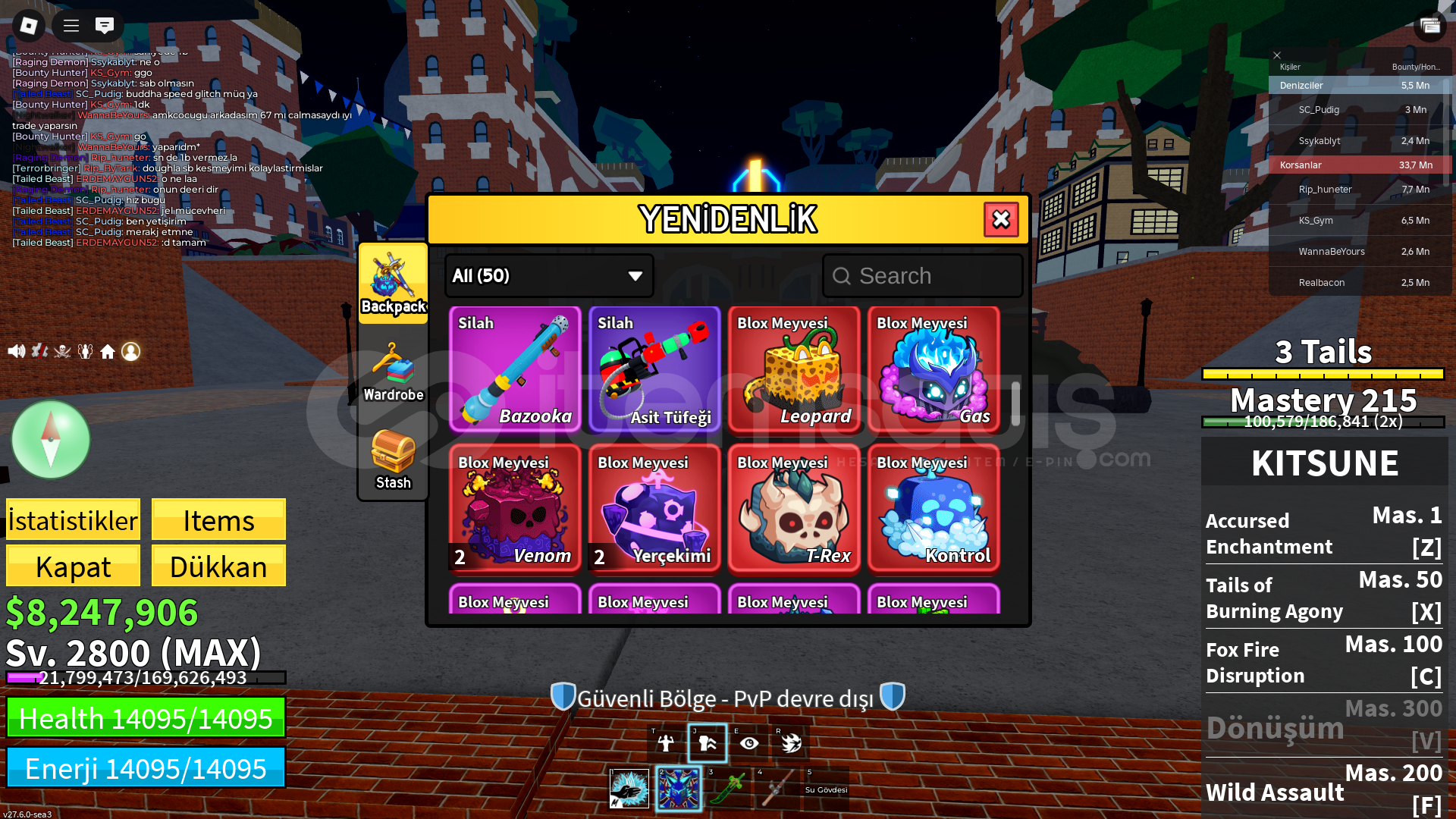 Blox Fruit Kitsune + 5 permli gamepassli hesap