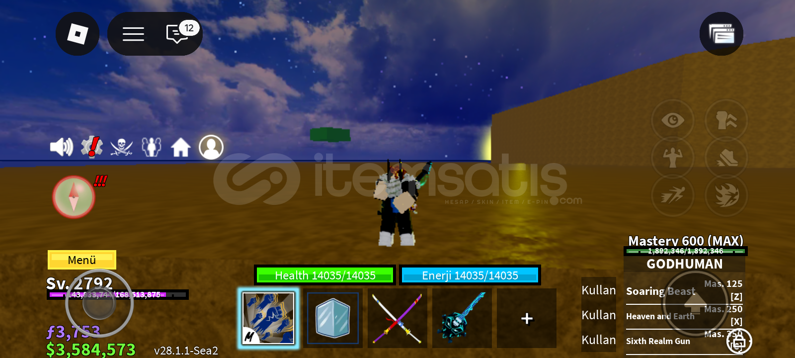 Hesap Max LevelCdk 600MasteryGodhuman600MasterySkull Guitar215Mastery3.5M Paraİce Max V2 1 Efsanevi aura KırmızıAlacak olan ki#...