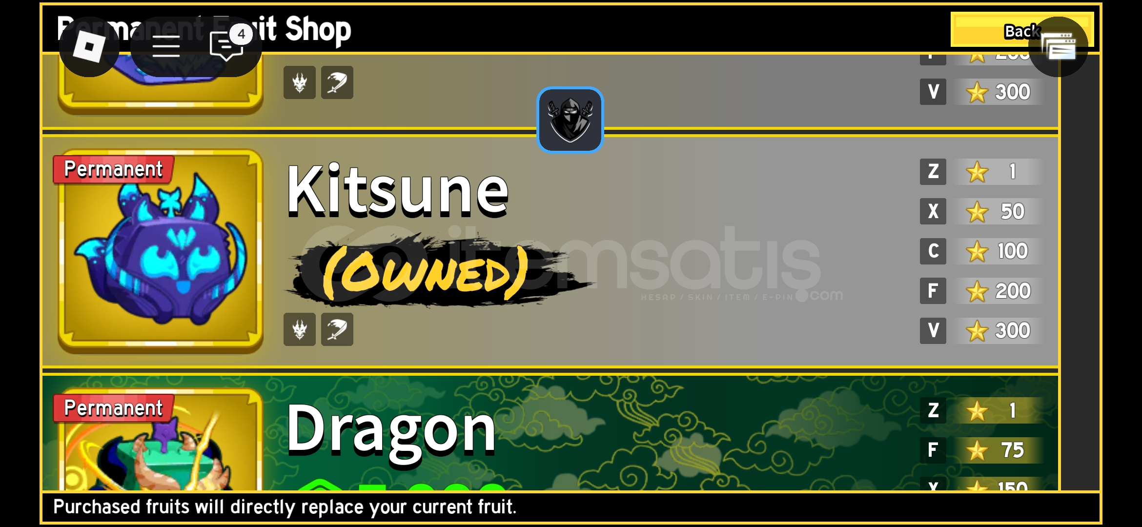 Hesap Perm Kitsune Portal Buddha Light 14k TotalTÜM GAMEPASLER FRUİT NOTİFİER HARİÇ DARK BLADE V3 TÜM V4 LER MAX ...