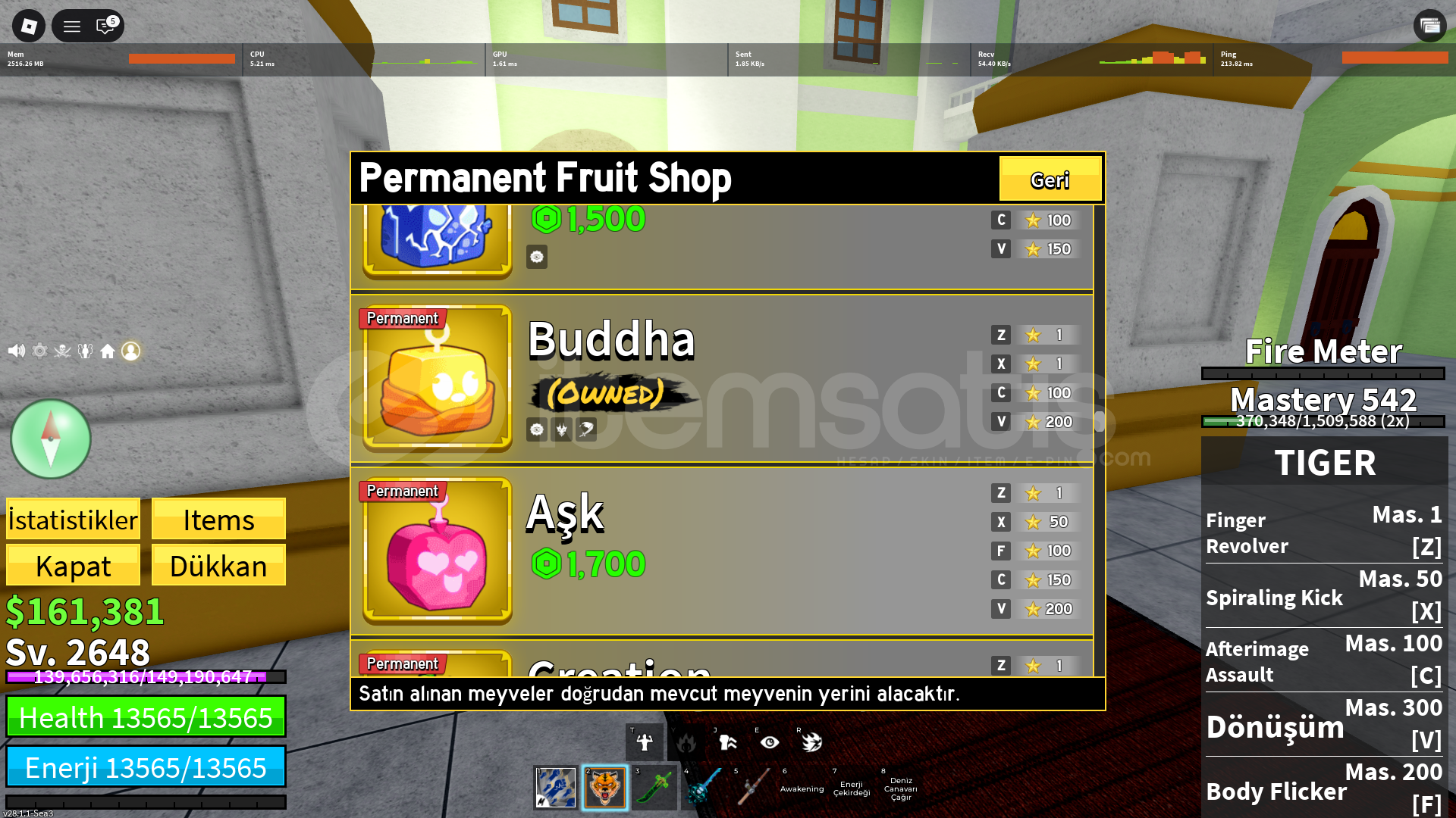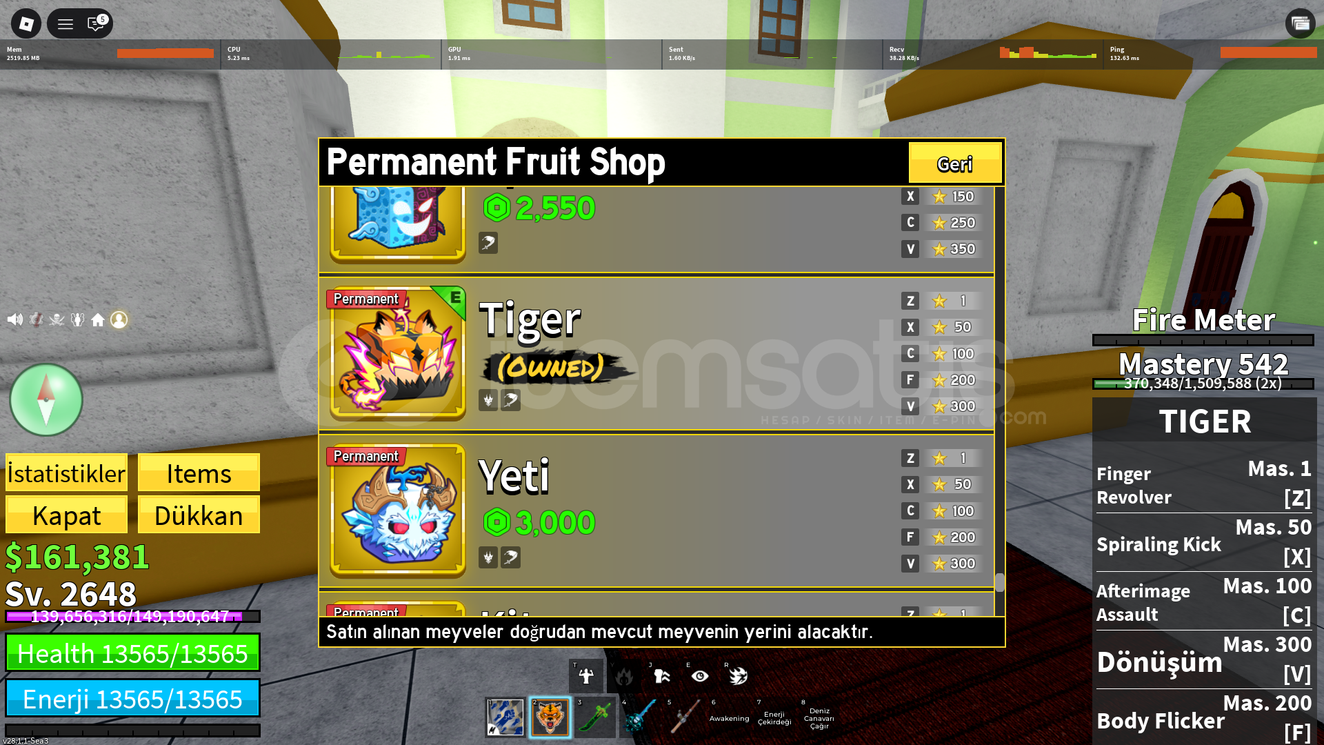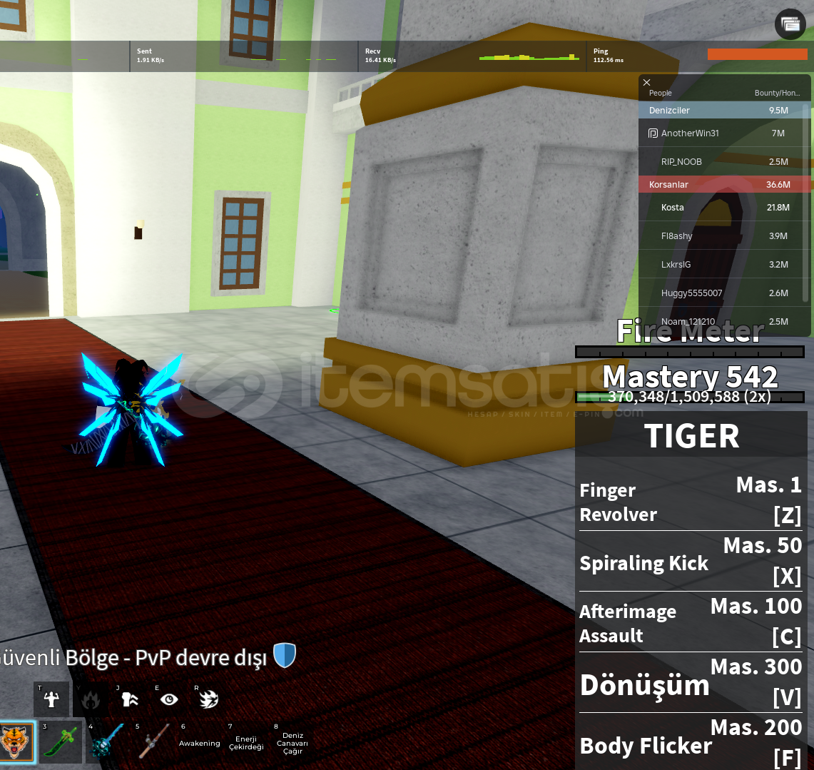 İçi dolu başta Blox Fruıt 21.8M bounty Perm TİGER,Budha,Portal 2x Money 2x Mastery Fast Boats Dark BladeV3 neredeyse tüm kılıçlar var Tüm race'ler V4 (mink olmayabilir unuttum) tüm hakiler mevcut Farklı olarak Arsenal(125 LEVEL) Evade(90 LEVEL+BOOMBOX) daha fazla bilgi için özel iletişime geçebilirsiniz.