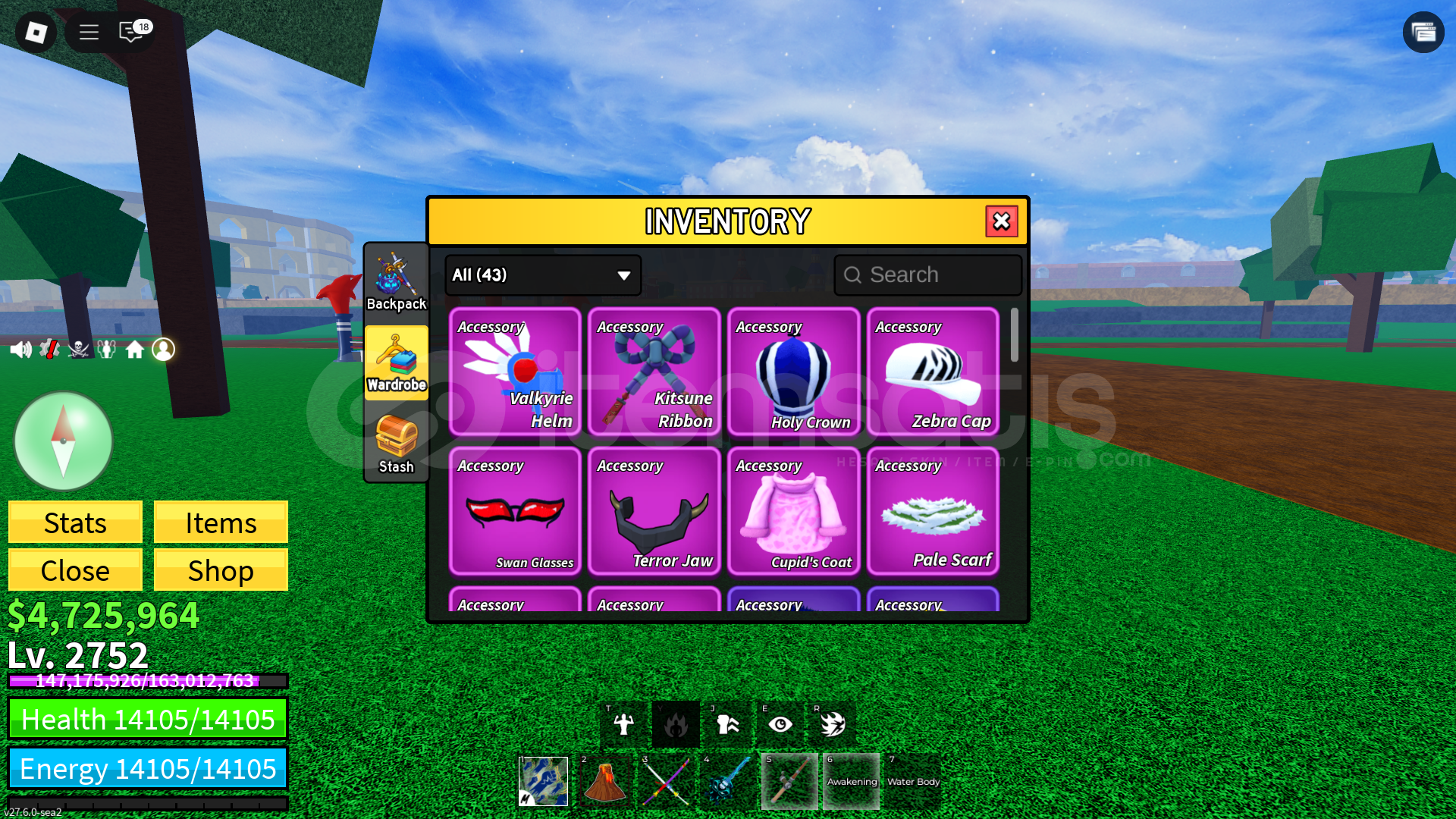Hesapta cdk skull guitar ve godhuman vardır.Shark ırkı v4tür çoğu meyveler v2dir.Hesap manuel teslim edilir çünkü eposta ekli.Hesaptaki diğer şeyleri merak edenler dm den sorabilir