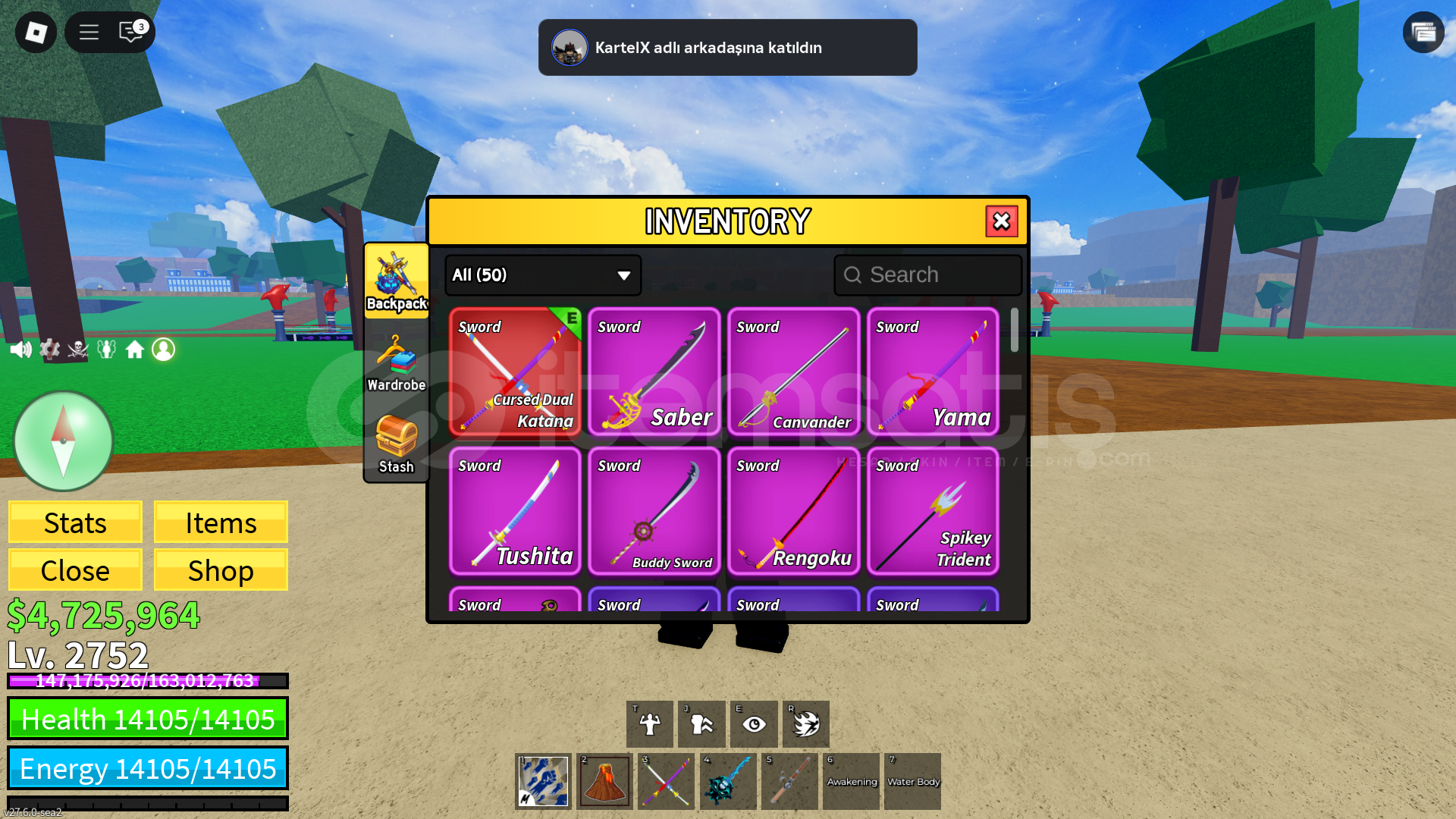 Hesapta cdk skull guitar ve godhuman vardır.Shark ırkı v4tür çoğu meyveler v2dir.