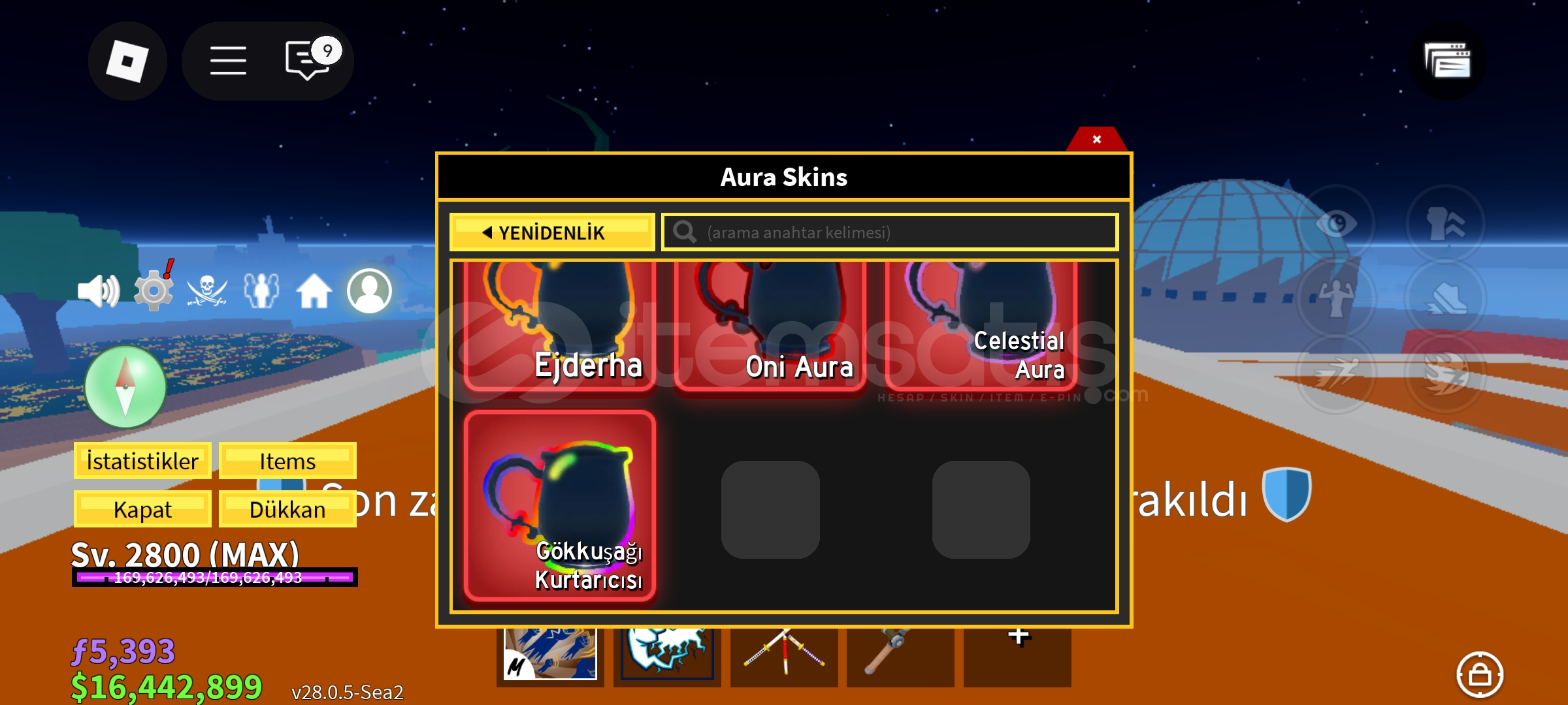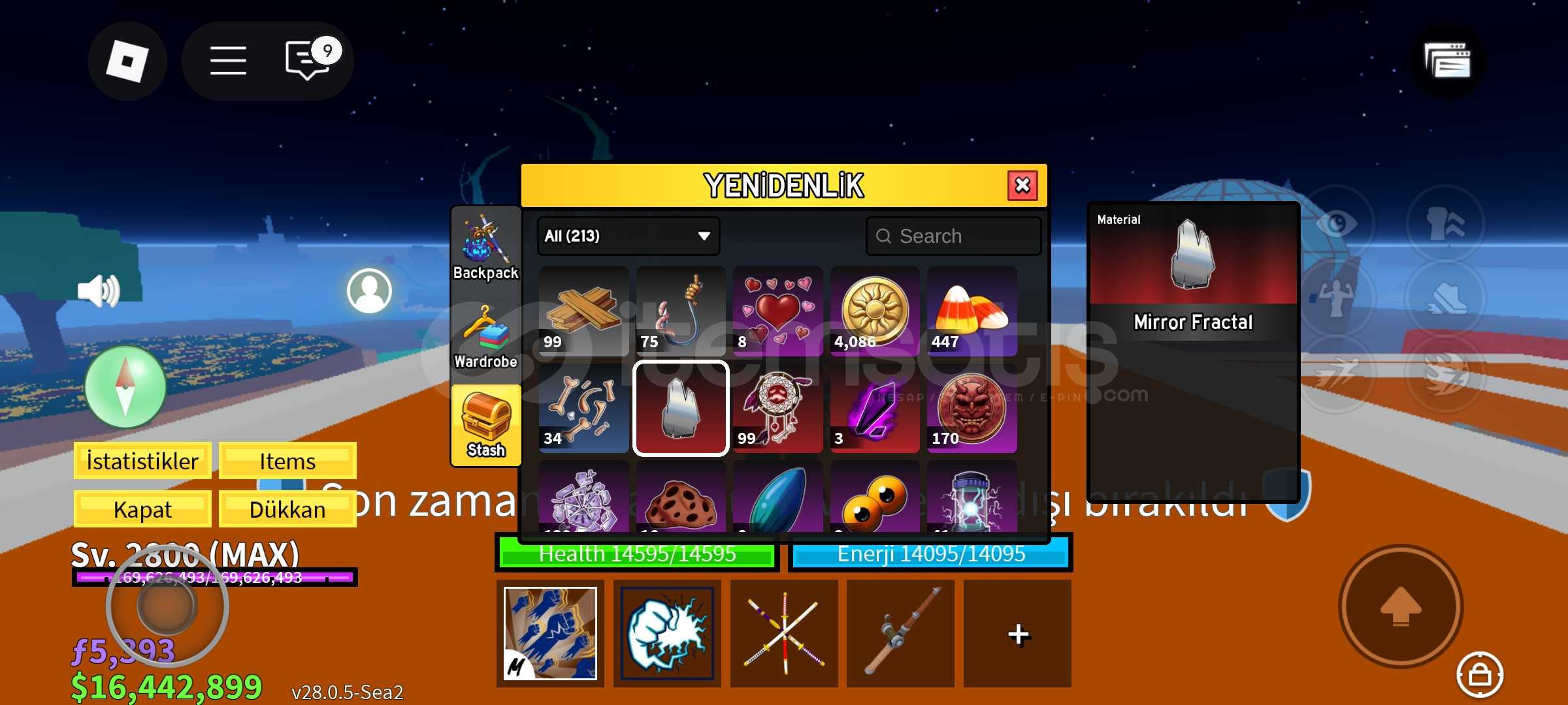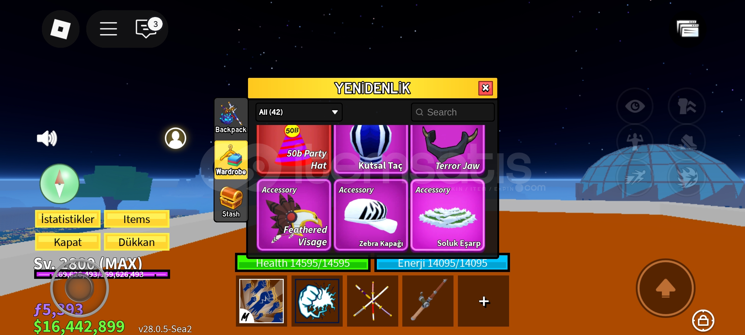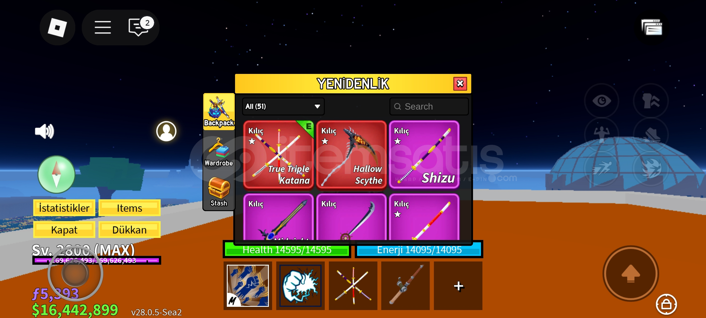 BLOX FRUITS MAX LEVEL PVP HAZIR FULL HESAP ⭐(MAX Seviye, Dough V2 Tamamlanmış, Nadir Kılıçlar + Legendary Scroll Basılı, Tailed/Angel V3)💎 1. HESAP VE KARAKTER BİLGİLERİSeviye (Level): MAX (2800)Para (Beli): 16,442,899+Ödül / Onur (Bounty/Honor): 2,557,202 / 2,520,936Irklar (Race): Tailed Beast V3 (Kuyruklu Canavar) ve Angel V3 (Melek)Son Görülme: MansionKlan (Crew): BLOXFRUIT_TRToplam Yakalanan Balık: 22...