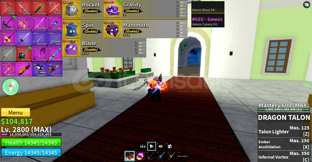 Hesapta TÜM KILIÇLAR VARDIRHesapta cyborg v4 vardırHesapta 2x mastery ve Dark Blade vardırHesabın leveli maxtırHesapta Dragon Talon vardır, maxHesapta 5 PERM VARDIRMammoth, Gravity, Blade, Spin , Rocket