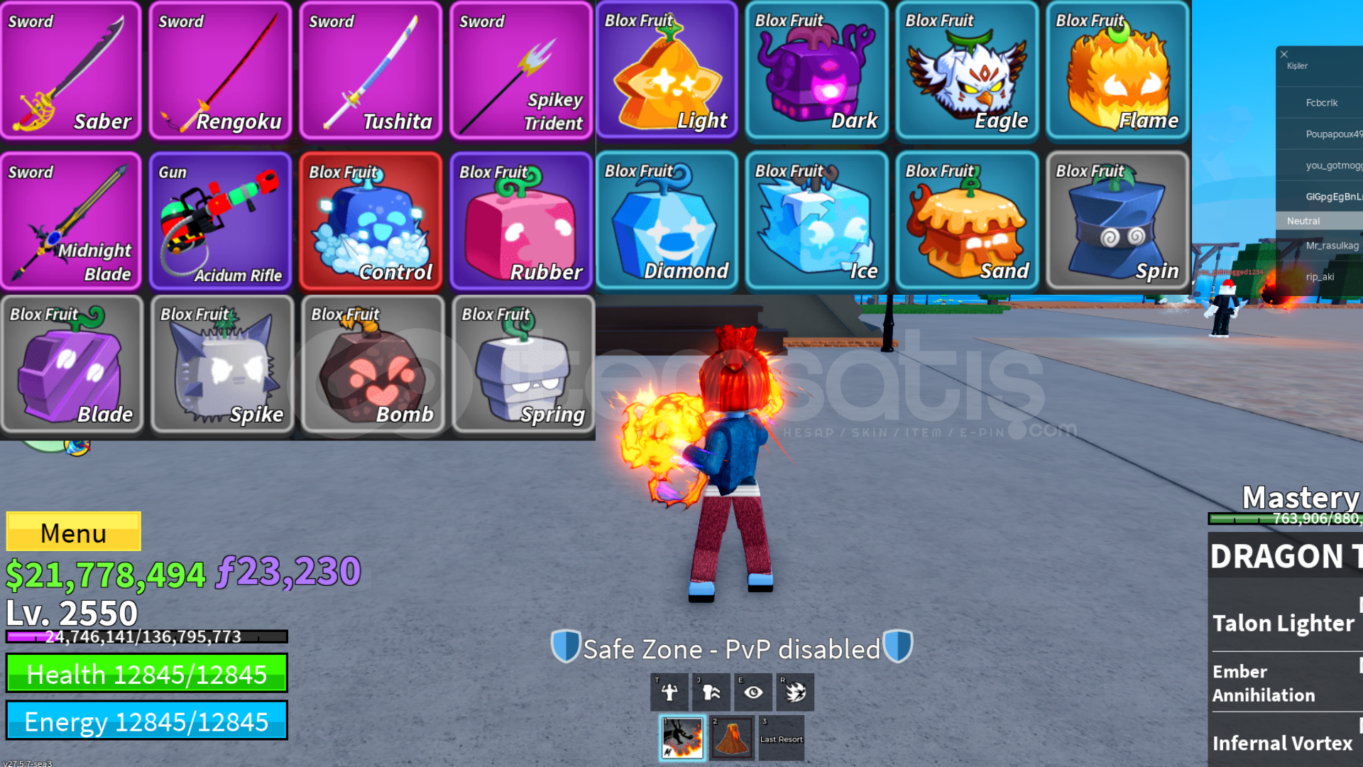 2550 MAX LEVEL HESAPDÖVÜŞ STİLLERİ > GÖRSELDE MEVCUTTURFRUİT: GÖRSELDEKİ GİBİDİRBELİ GÖRSELDEKİ GİBİDİRFRAGMENT GÖRSELDEKİ GİBİDİRAKSESUAR KILIÇ VE SİLAH GÖRSELDEKİ GİBİDİRHESAP BİLGİLERİ:DAHA ÖNCESİNDE HERHANGİ BİR EMAİL VE TELEFON NUMARASI KAYIT EDİLMEMİŞTİRALDIKTAN SONRA HESABIN ...