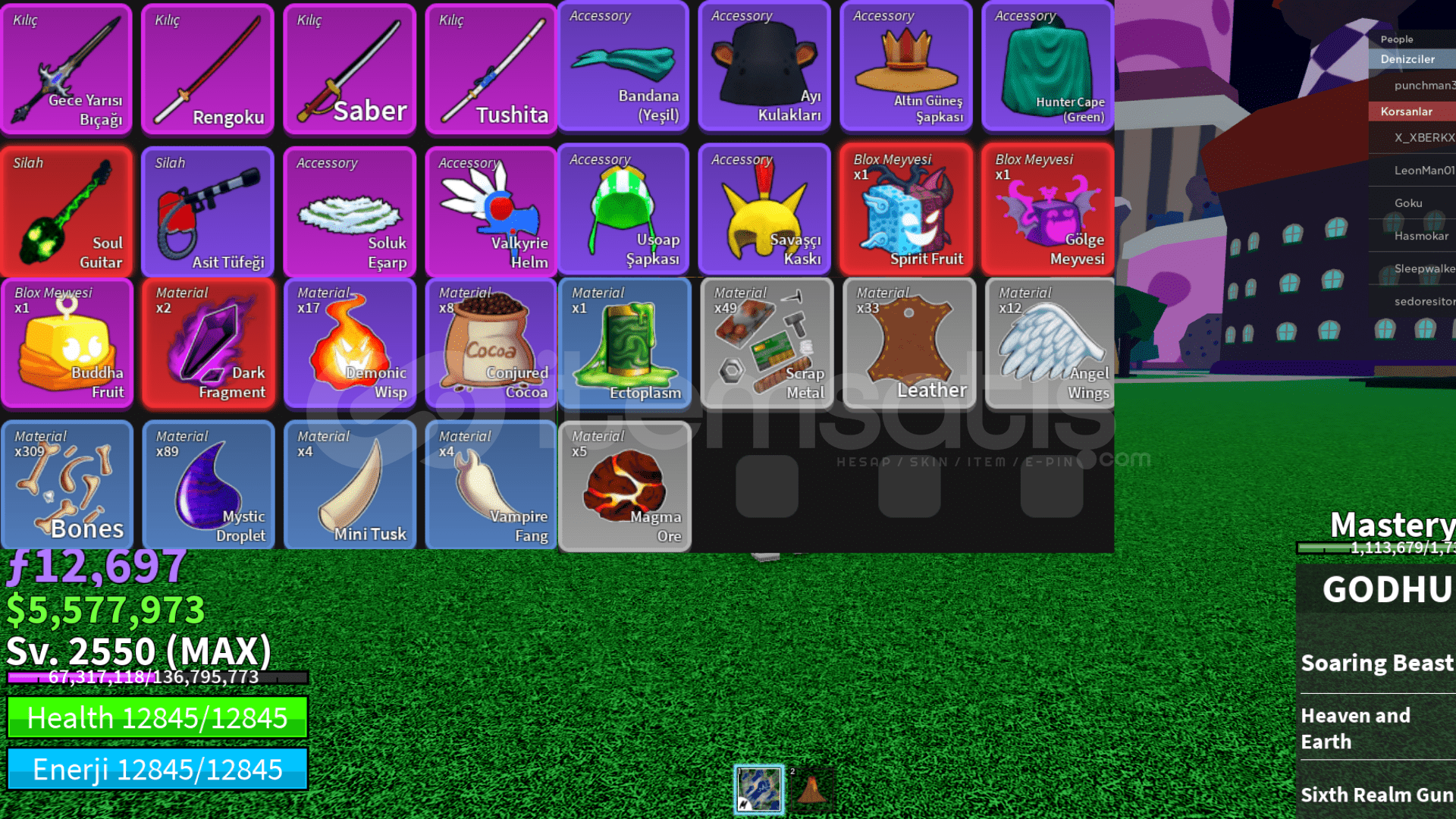 ✅BloxFruit✅2550 LVL⭐SG SPİRİT GOD GARANTİ⭐5.5M