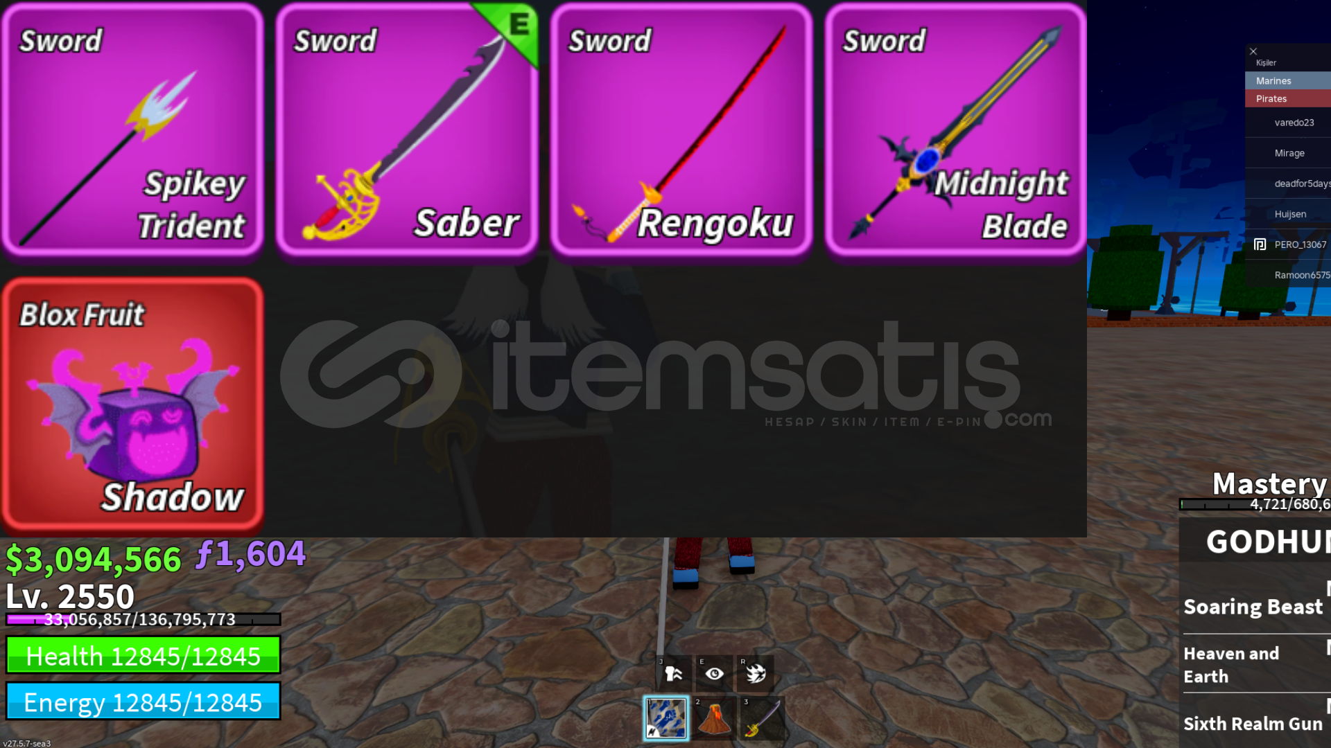 ✅BloxFruit✅2550 LVL⭐SHADOW GOD GARANTİ⭐3M