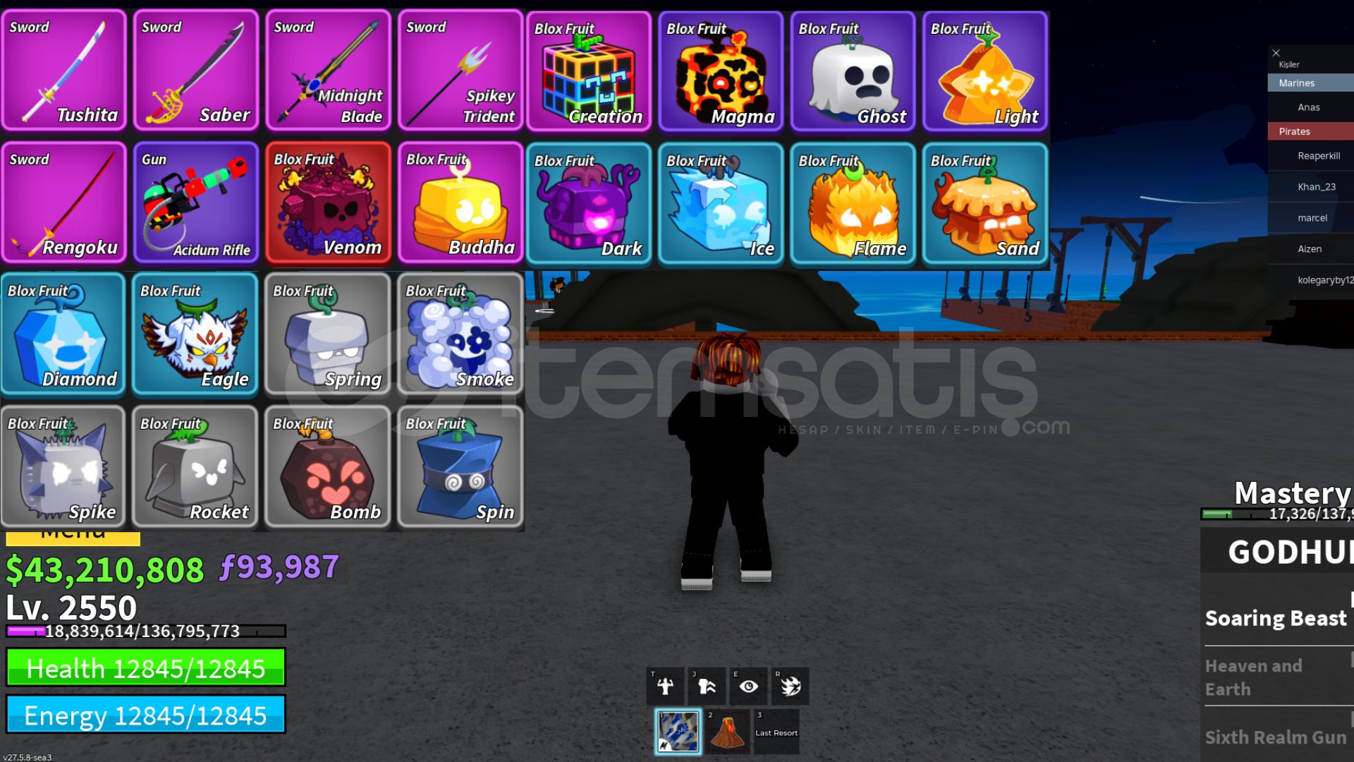 ✅BloxFruit✅2550 LVL⭐VENOM GOD GARANTİ⭐43.2M