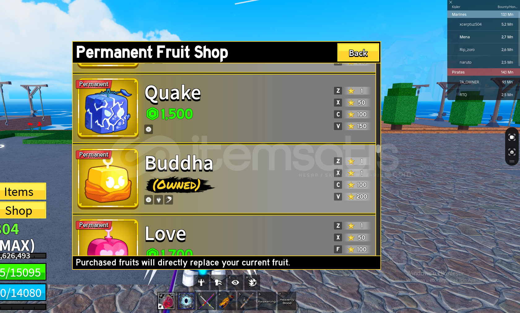 BloxFruit Permli Hesap Perm Dragon Ve Perm kit perm portal perm pain(celestial pain skini vardır) perm lightining (red lightining skini vardır) Perm dough ve 2x mastry 2x money fast boat da bulunur