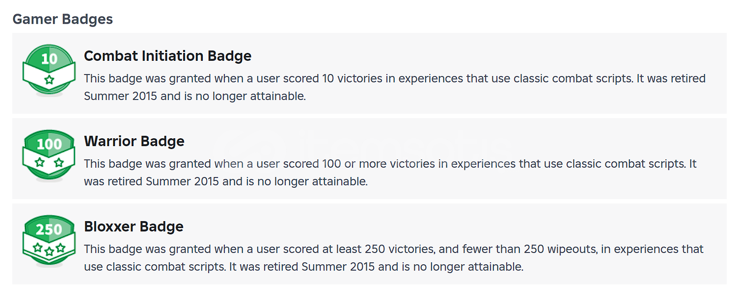 • Hesapta alınamayan tüm Gamer Badgeler vardır. (WarriorCombat Int., Bloxxer)