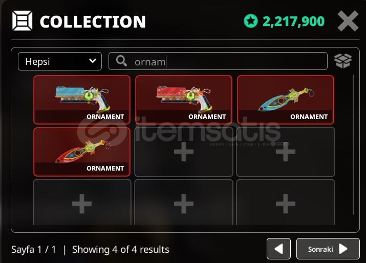 Hepsinden birer adet vardır oyunun nadir eski itemidir.