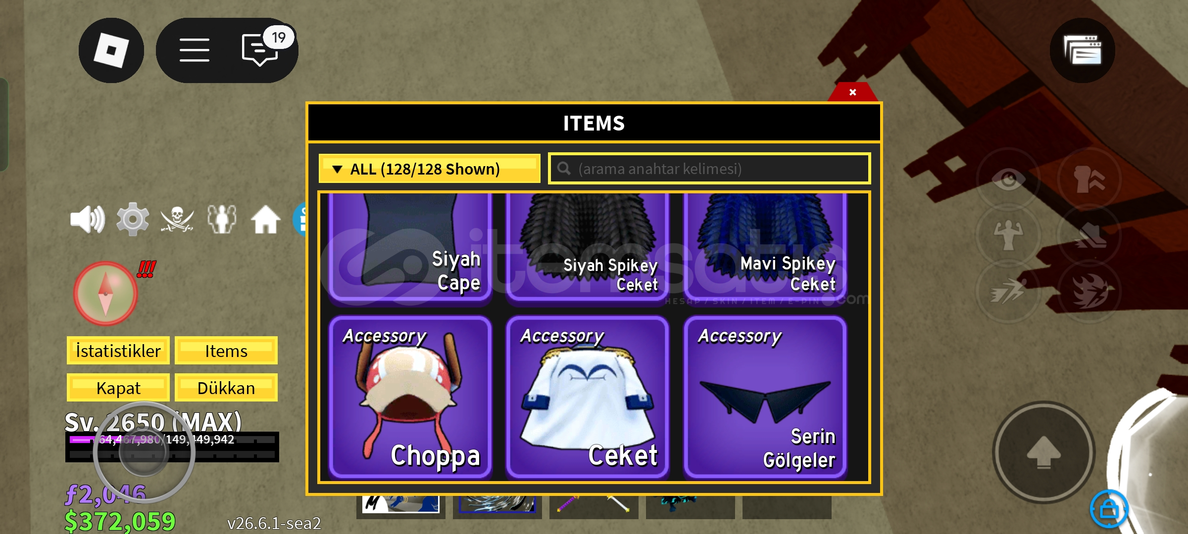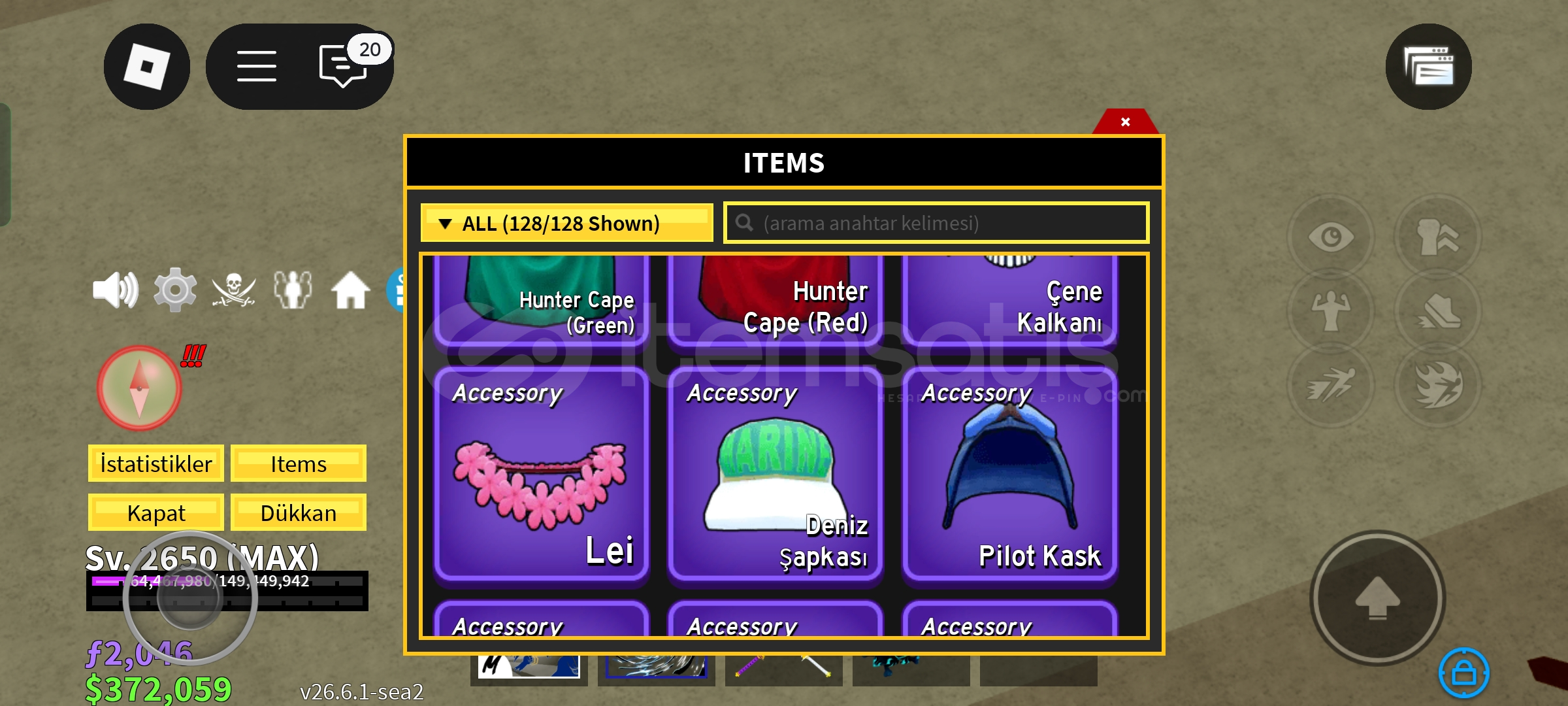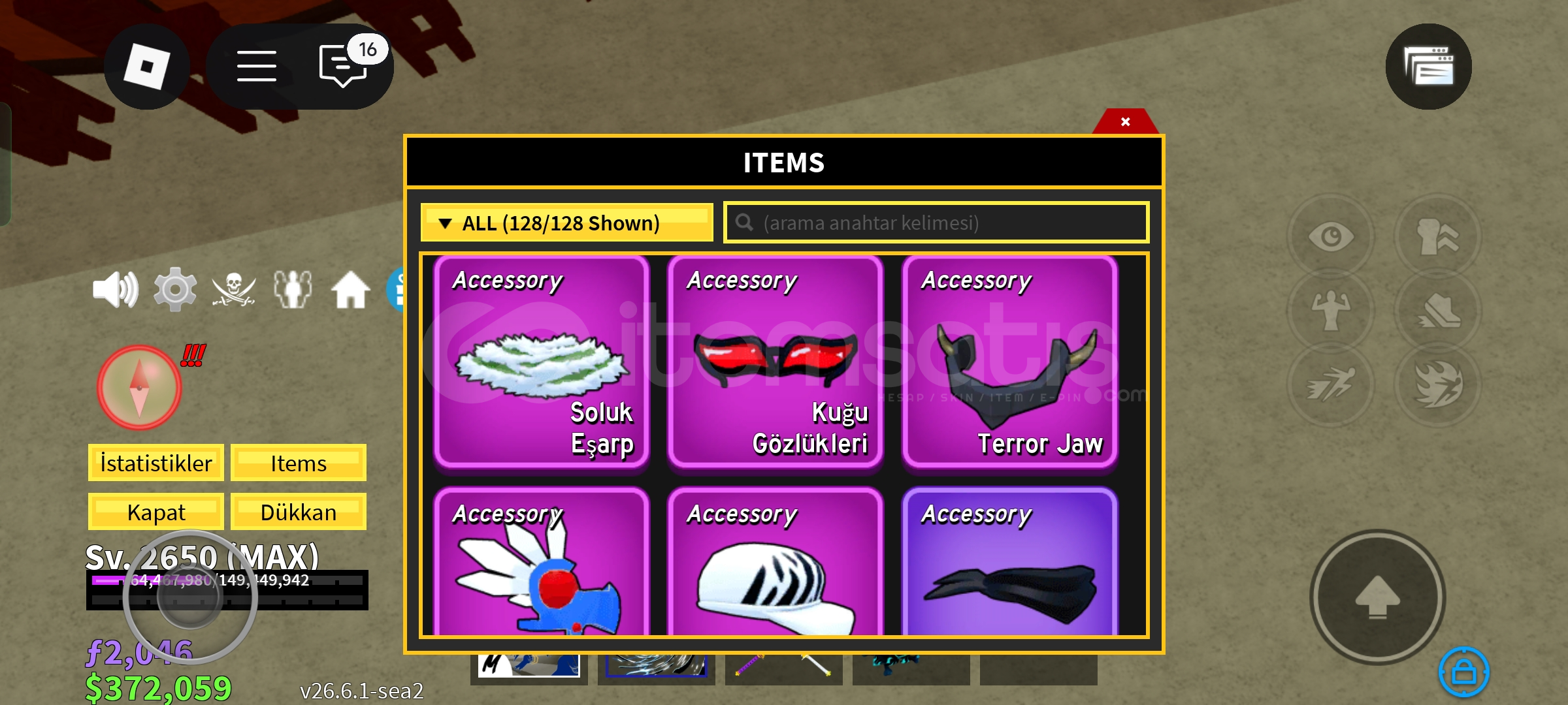 Hesabın avatarı:Yaklaşık 10k civarı robux110 offsale10-15 ugc Sab (steal a brainrot) :109m mietetira 88m los mobilisRebirthi iyiGag (grow a garden) :Dragon fly lar Mimicler çoğu sey varBlox fruit:Çok iyi şeyler var ss lerde görünür3-4 sağlam fruitMitik sword larFast boat 2x money +1 storage Dark blade vb.Rainbow auraHesap daha birçok oyunda kasılıdırHızlı teslimat Mainlik hesap Ucuz fiyatMük...
