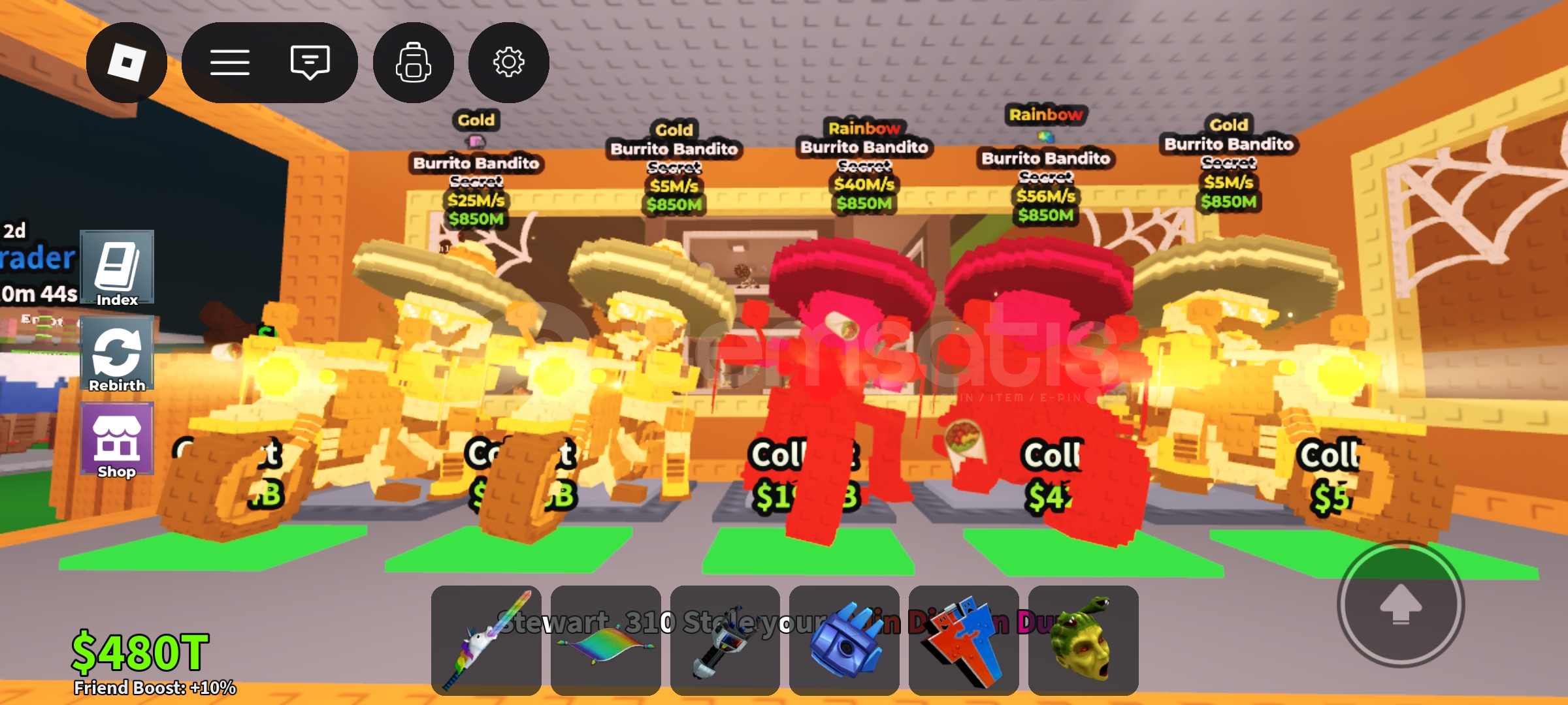Burrito bandito gold 25m/s=100tlX2 Burrito bandito gold 5m/s=50+50Burrito bandito rainbow 45m/s=150tlBurrito bandito rainbow 56m/s=185.5