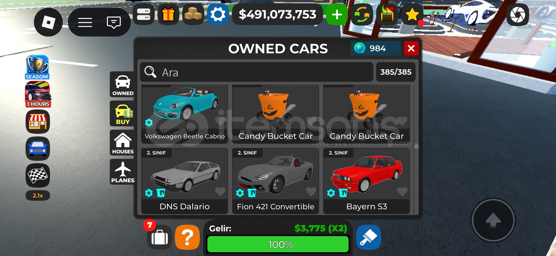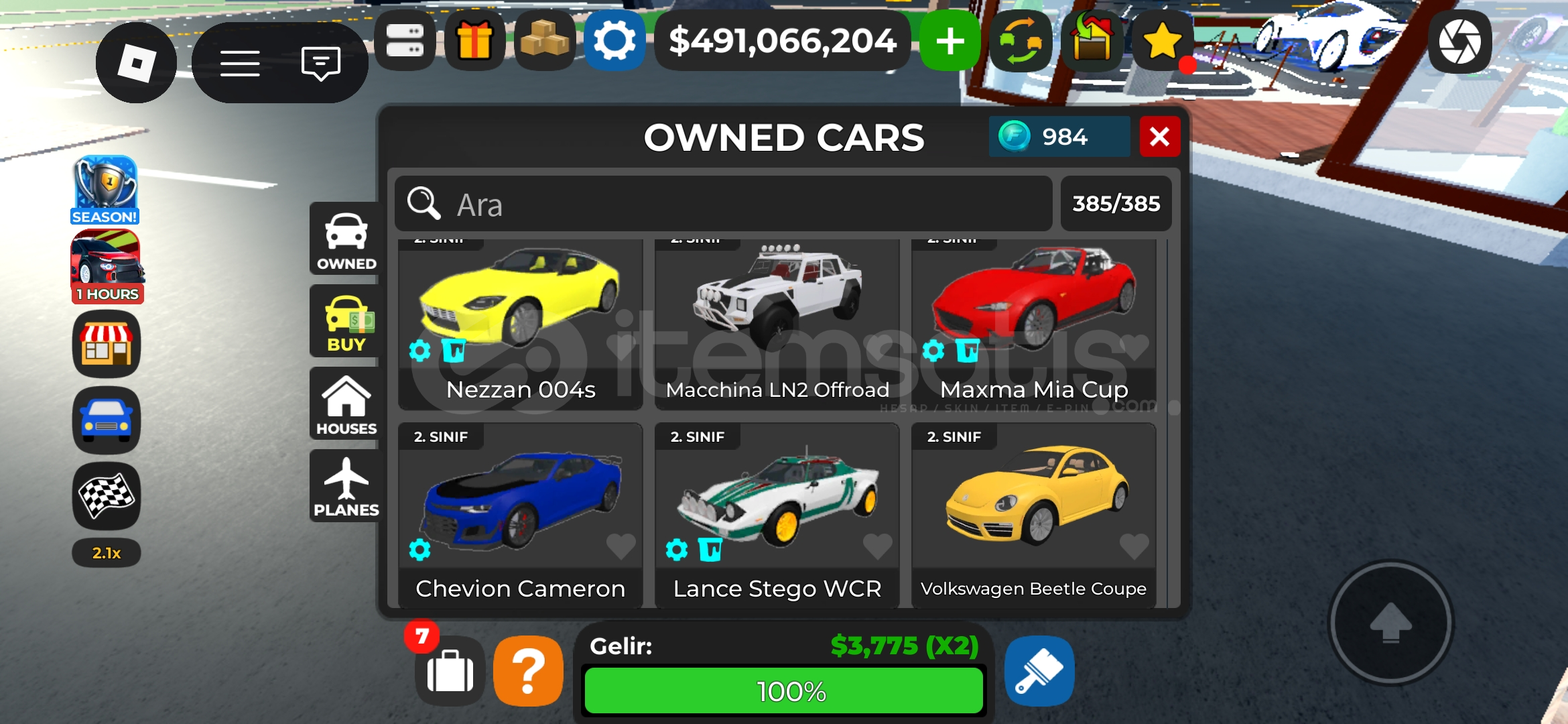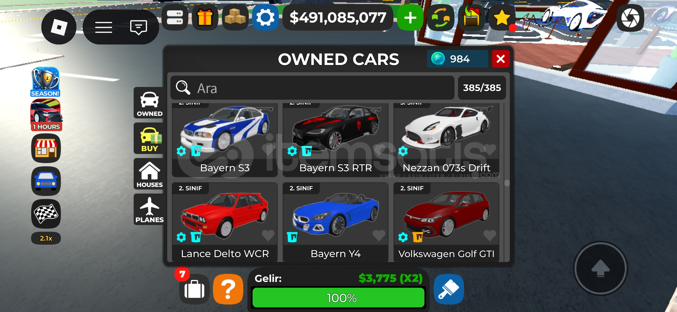 -görseldeki istediğiniz araba için bana yazabilirsiniz. -1000 token = 10TL' den hesaplanacak. -2000 tokenin altındaki arabalar 20TL' dir. -trade ile verilecektir. -bu ilanı almayınız sadece temsilidir.